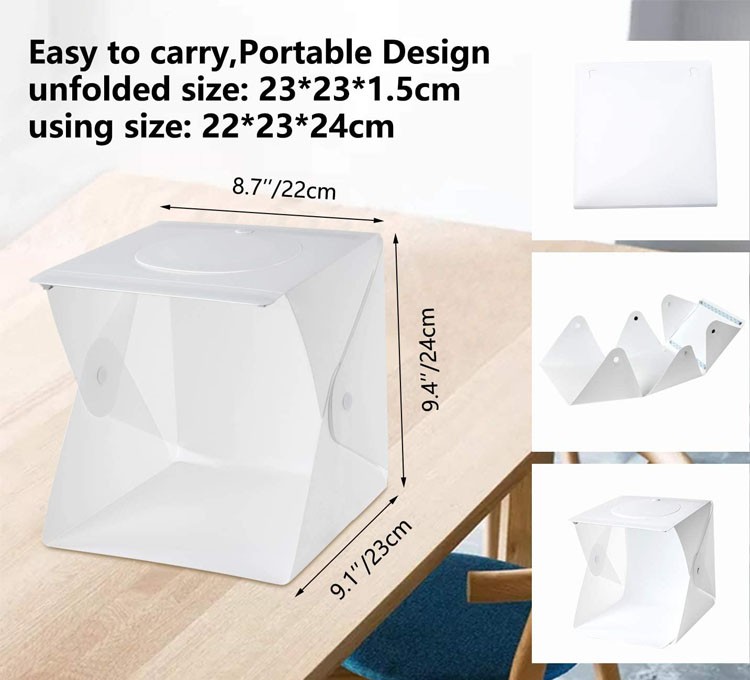 20CM small photo studio 2 strips of LED adjustable light folding light box able to prostrate photography light box double light 6 color background