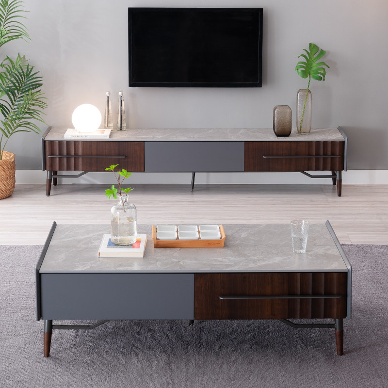Nature home coffee table TV cabinet combination Italian style light luxury small apartment rock slab living room furniture DG222