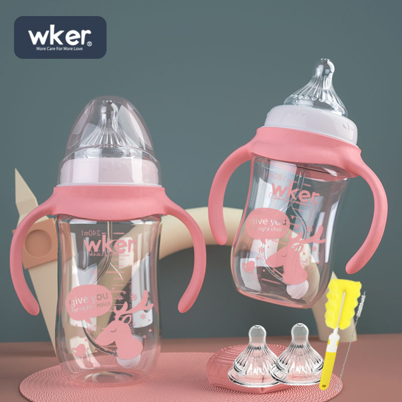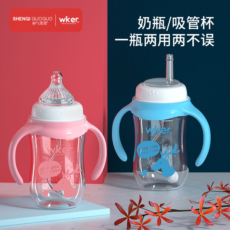 Baby bottle high temperature resistant wide-caliber baby milk pot children's anti-fall imported PP material anti-flatulence silicone pacifier