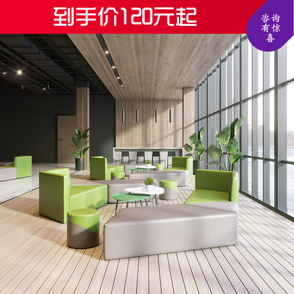 Minimalist Modern Office Guest Reception Leisure Area Splicing Training Leather Art Creative Profiled Sofa Tea Table Combination