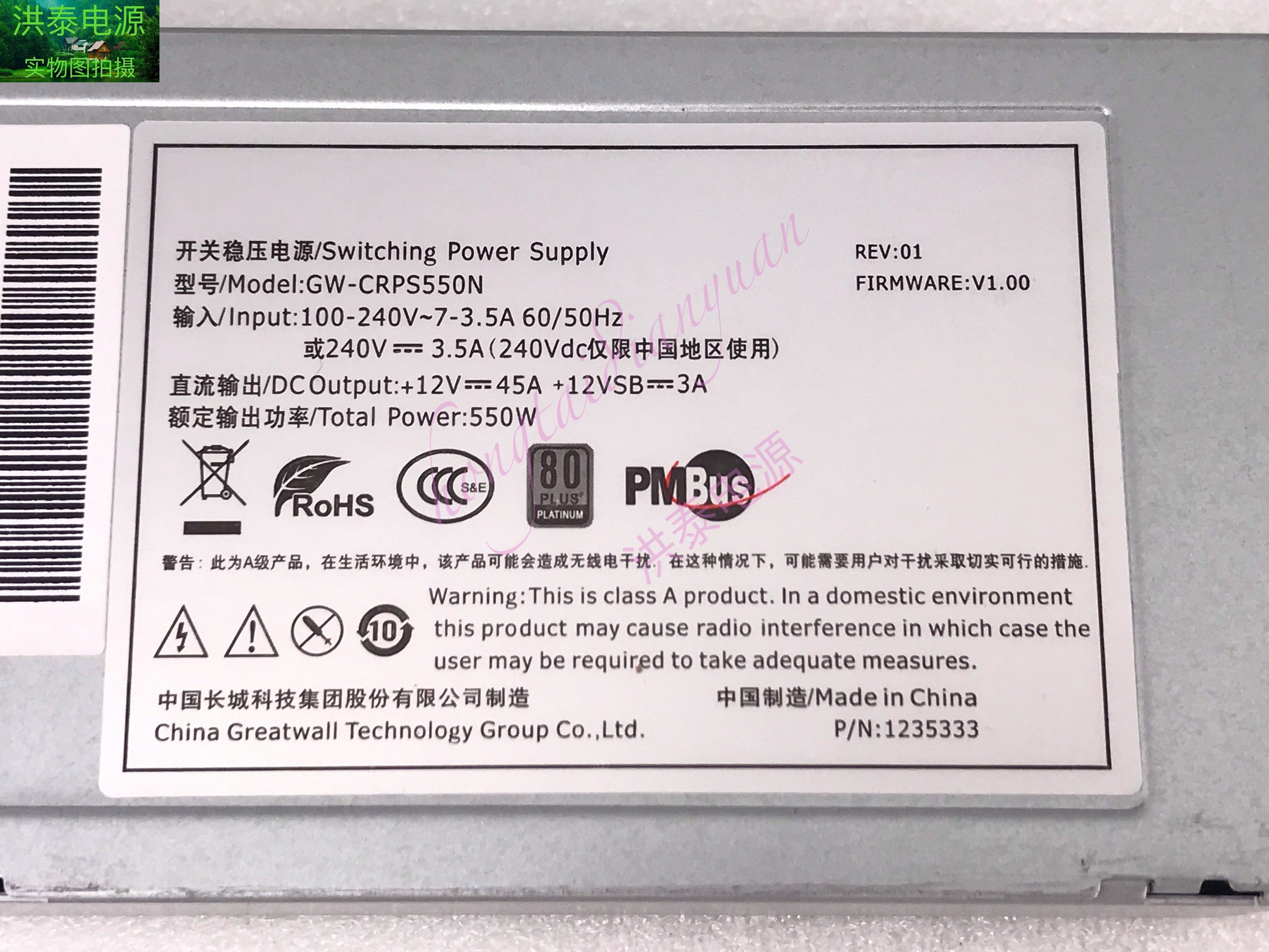 Dawn Wave 550W Server Power Supply GW-CRPS550N GW-CRPS550B Great Wall Redundant Power Supply