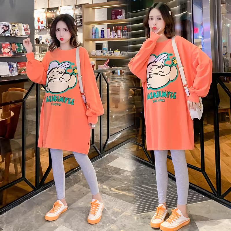 Pregnant woman blouses female T-shirt with long version loose large size dress in spring clothing Fashion out for spring and autumn jersey long sleeves