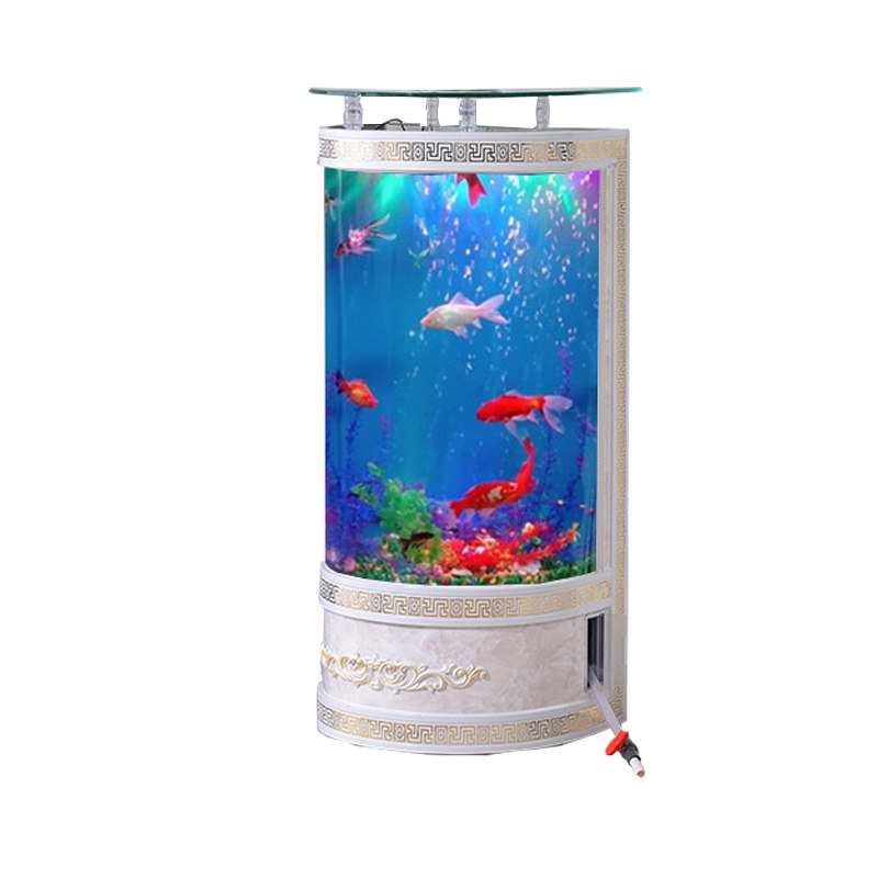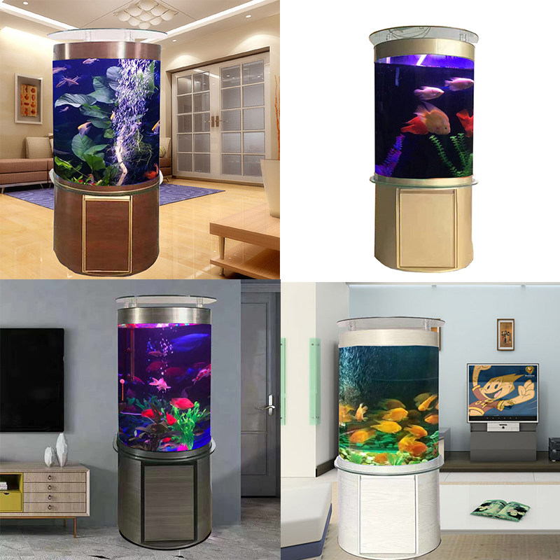 European-style semi-circular fish tank aquarium living room cylindrical ecological glass floor-to-ceiling household medium and large goldfish tank without changing water