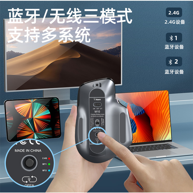 Spacewalk M10 wireless mouse bluetooth three-mode unlimited charging mute silent office game e-sports suitable for tablet ipad apple mac female boys laptop desktop mouse machinery