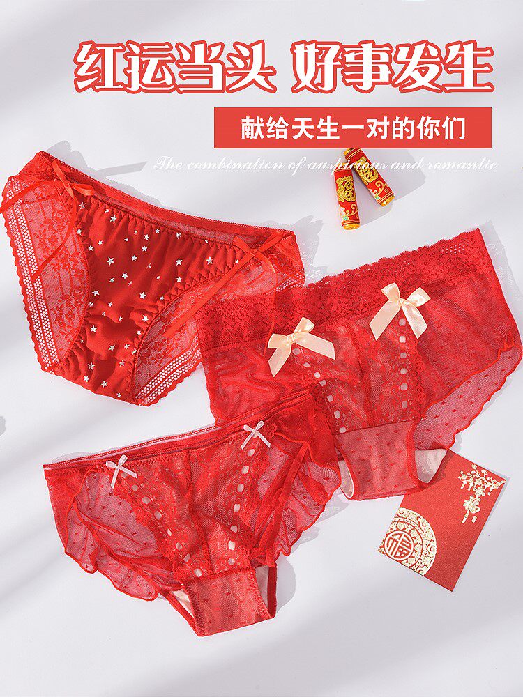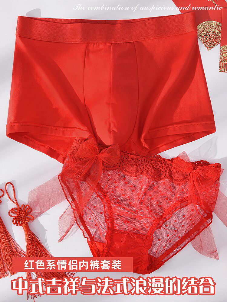 Langsha couple underwear couple models passion lace red sexy wedding a pair of men and women cotton triangle boxer