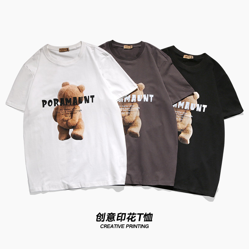 Hong Kong Tide Cartoon Bear Handsome Boys Short Sleeves Harbor Couple T-shirt New Summer Shirt