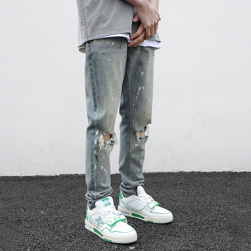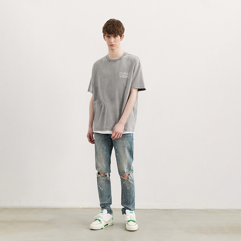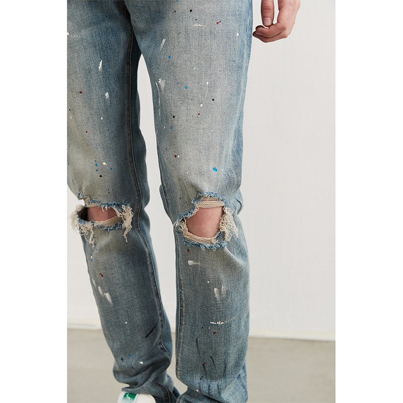CLIMAX VISION Splash Color Wash to make old knee Broken Cave Jeans Micro-Slingshot Tannen Trousers Boom