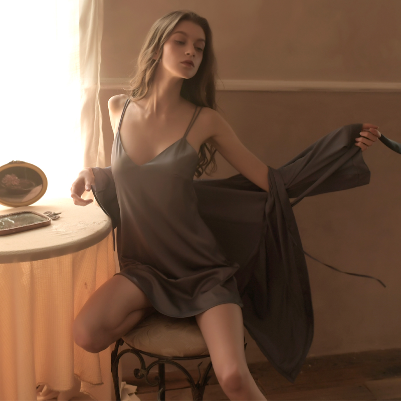 Sexy Sleepwear Women's Summer Sleeping Dress 2022 New Advanced Senses Ice Silk Real Silk Slim Pure Desire Harness Suit