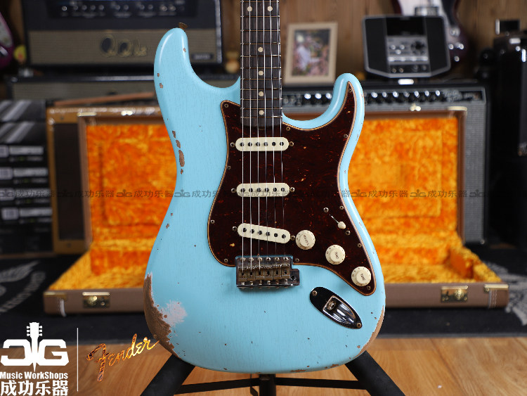 Funder Finda 2022Customshop1962 CS62 Daphne Blue Triple Single ST Beauty Electric Guitar