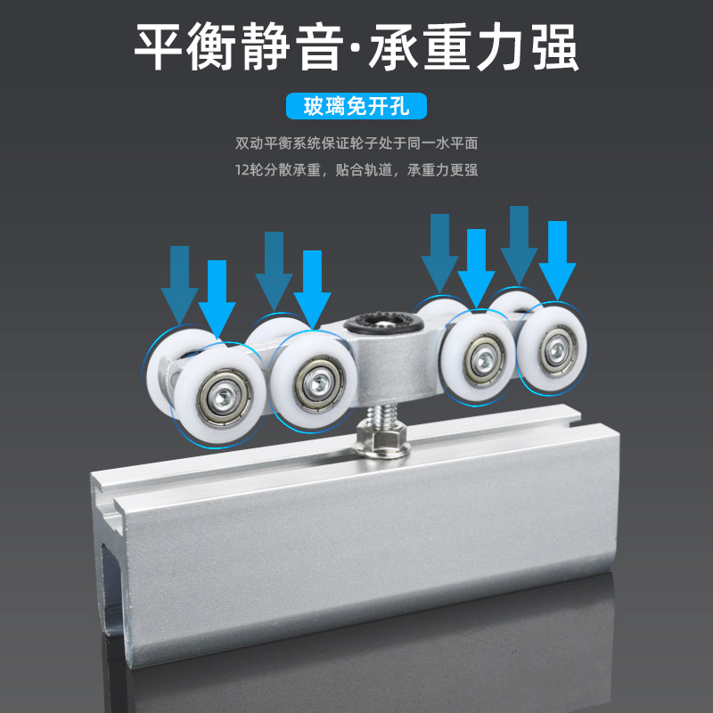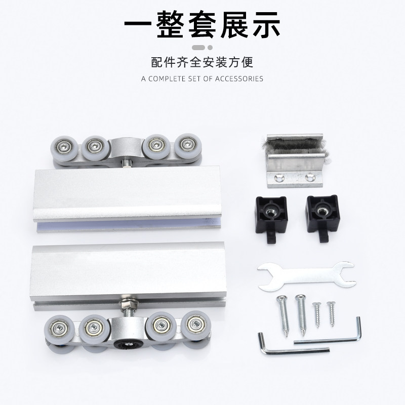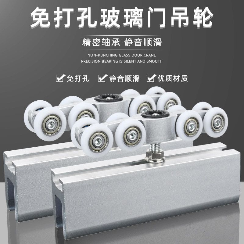 Free Punch Glass Ramen Suspension Wheels Bathroom Free bore hanging pan Translational Glass Door Pulley Track Five Gold Accessories