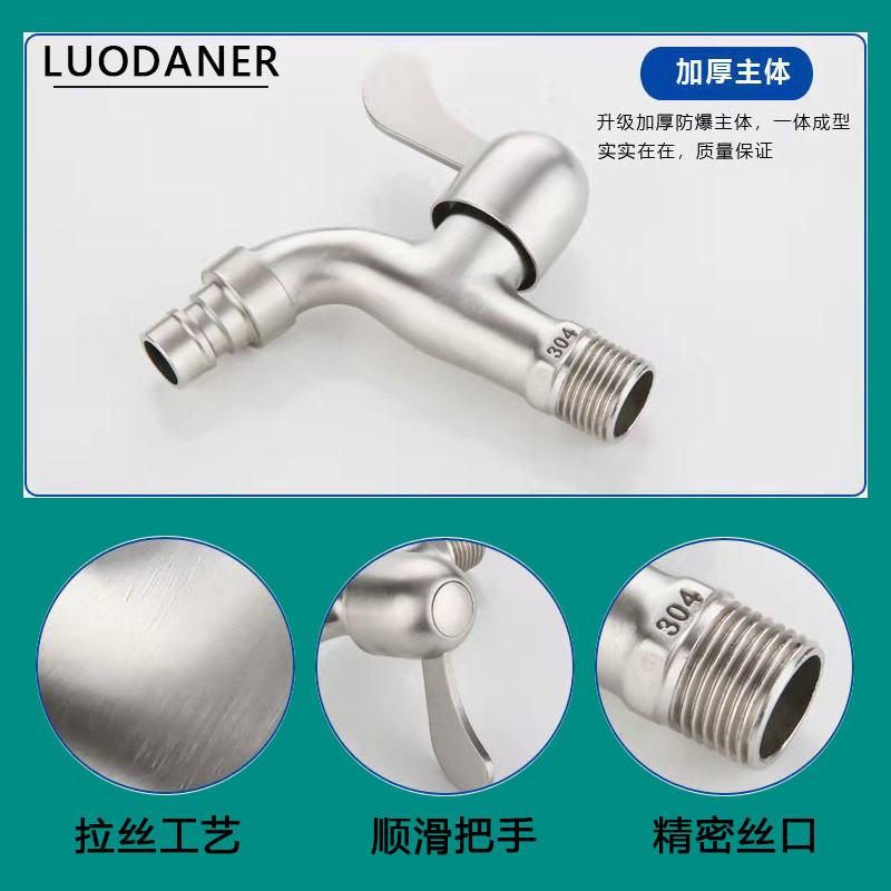 Lengthened special washing machine tap 304 stainless steel thickened water nozzle mop pool 4 minutes quick on tap switch-Taobao