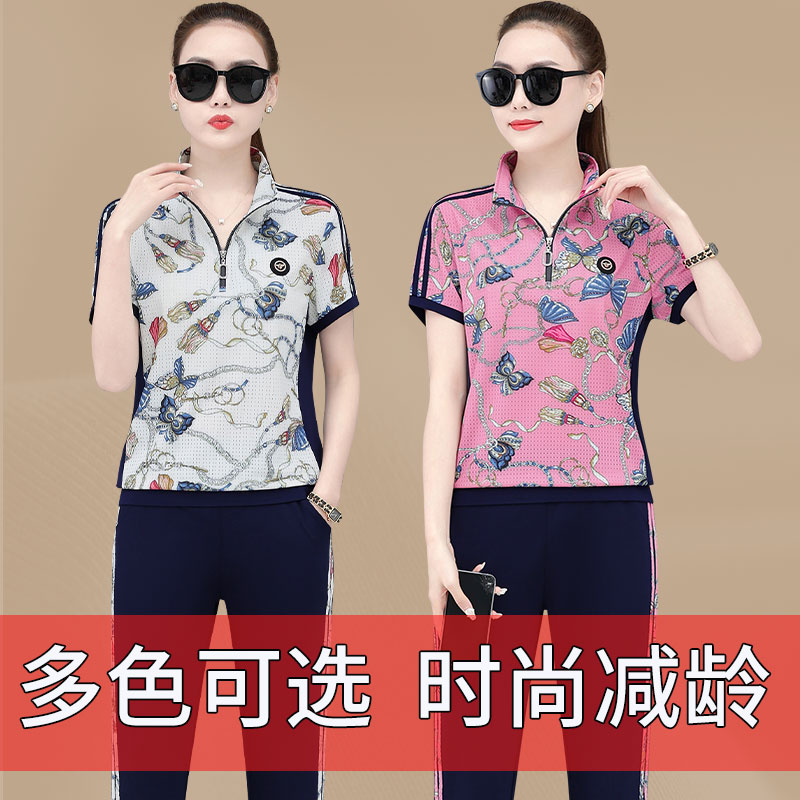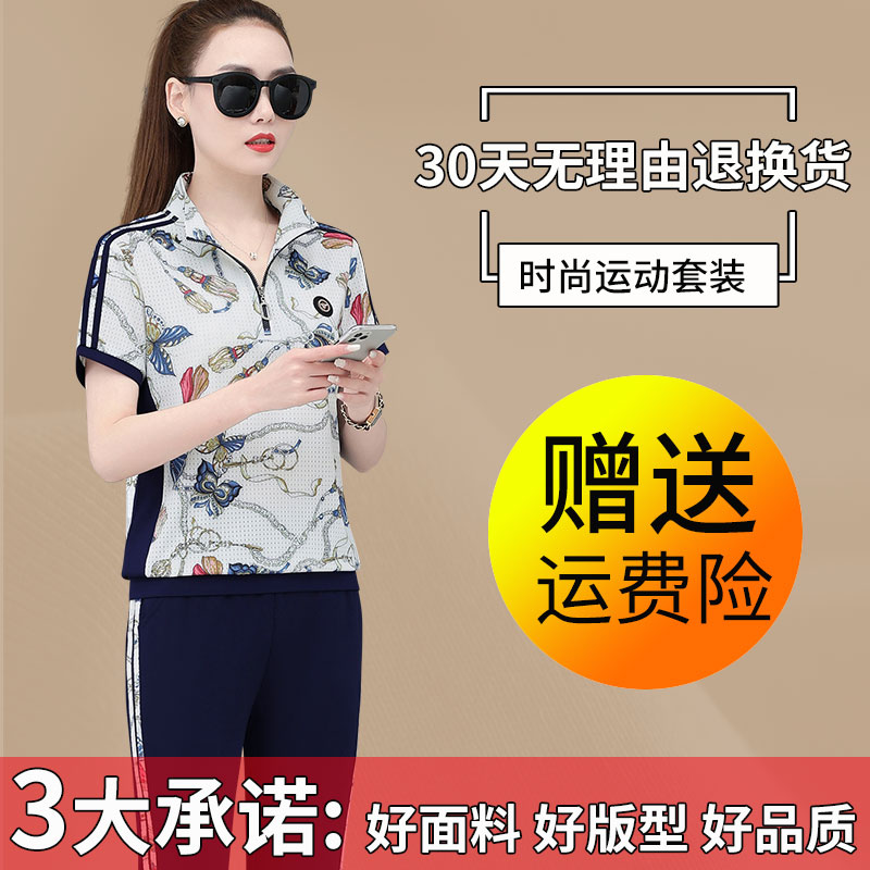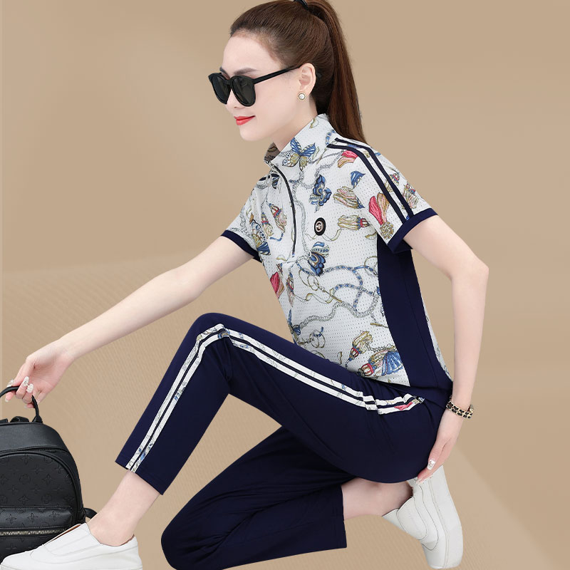 Casual Sports Suit Women's Summer 2022 New Ice Ribbon Big Size Easy Fashion Short Sleeve Foreign Pie Two Sets