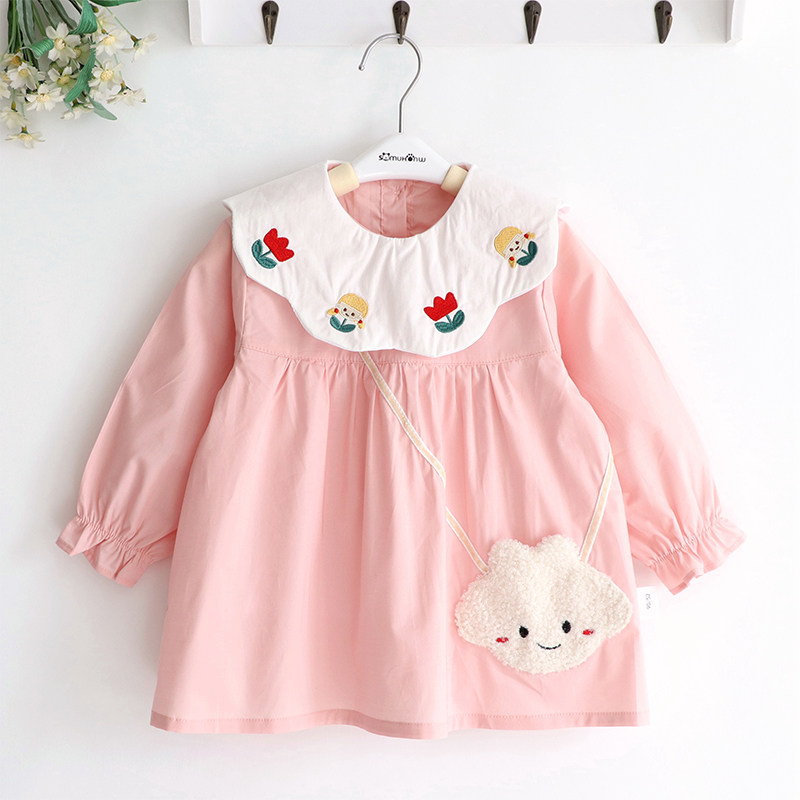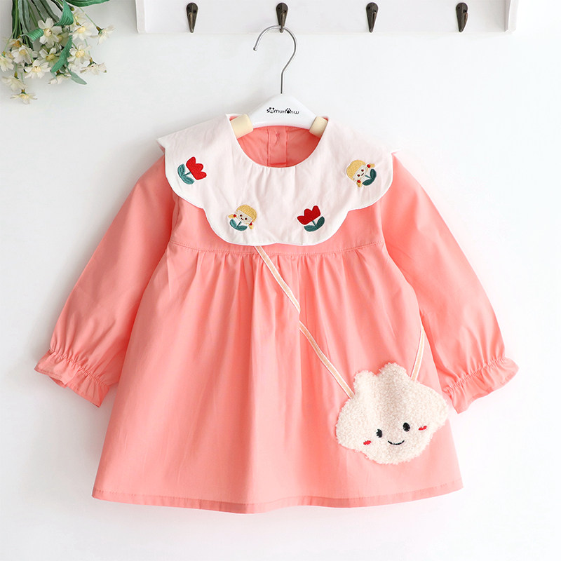 Flowers girl girl princess spring and autumn girl girl pure cotton waterproof clothes eat food clothes reverse dress