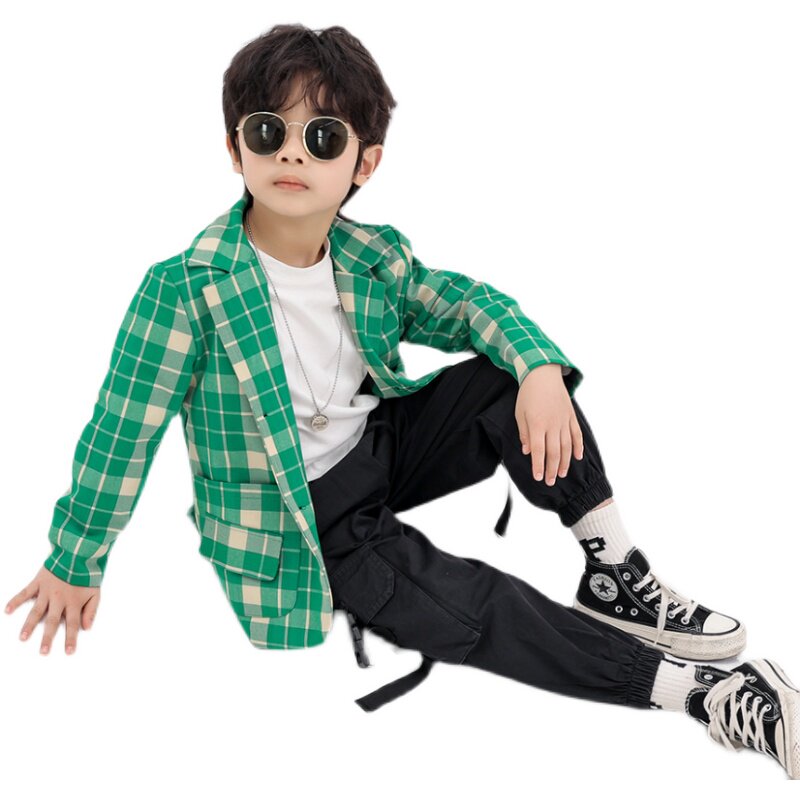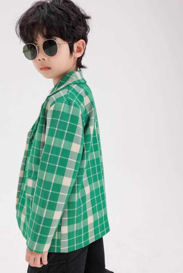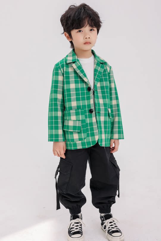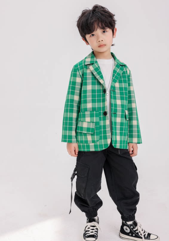 Spring and autumn new foreign Han version wave boy baby green plaid casual fried street walk show CUHK Tong suit jacket