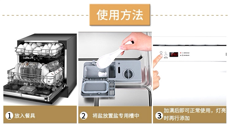 The dishwasher is soft with water and salt.