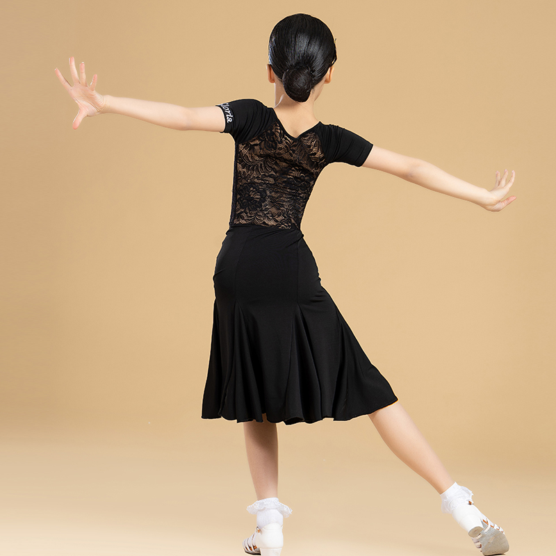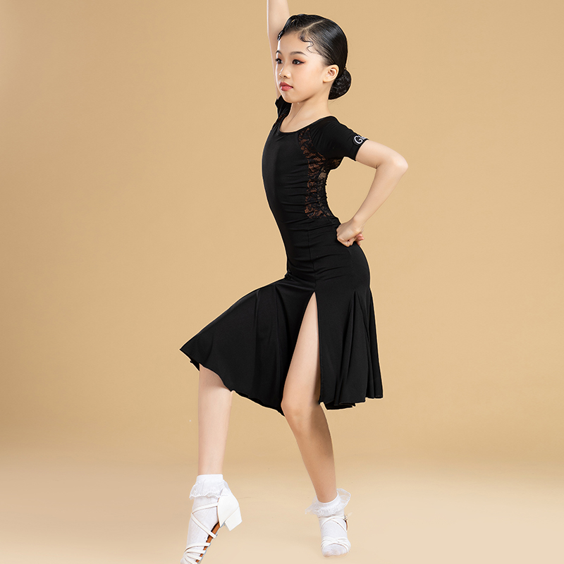 Gloria Latin Dance Clothes Women's Selected Short-sleeved Lace Slit Dress Children's Latin Dance Practice Clothes JX019