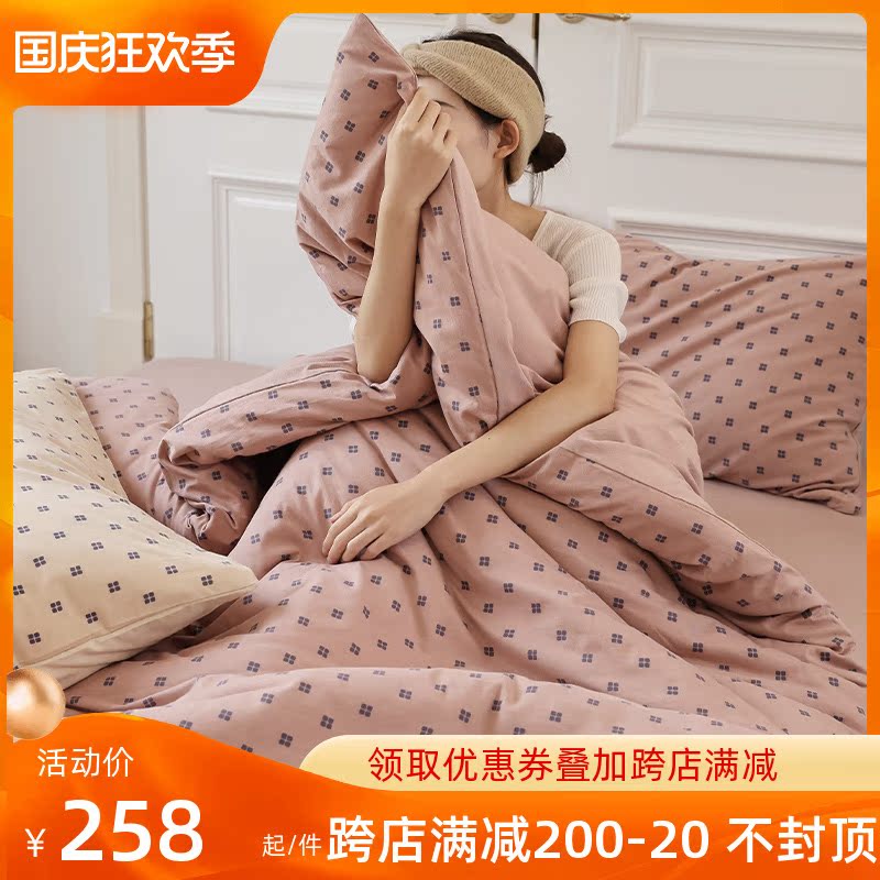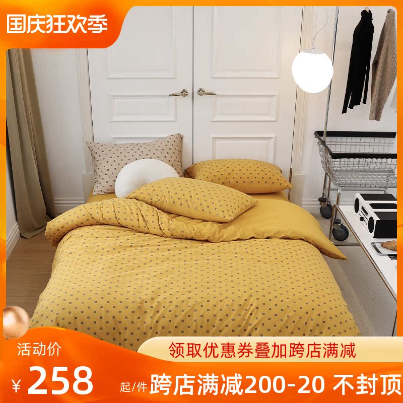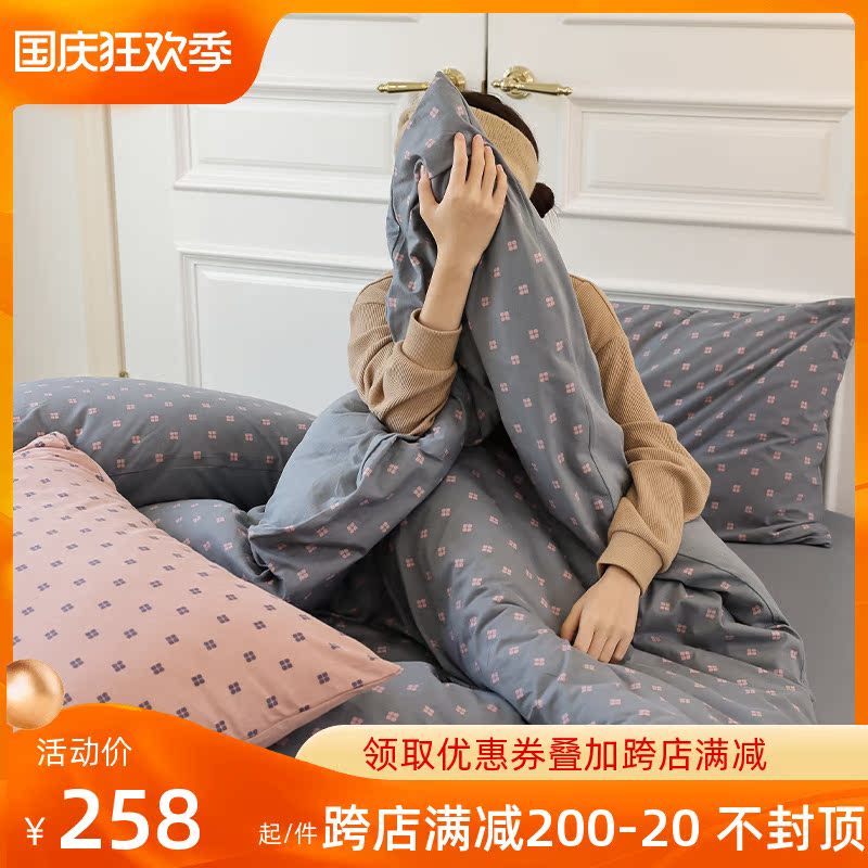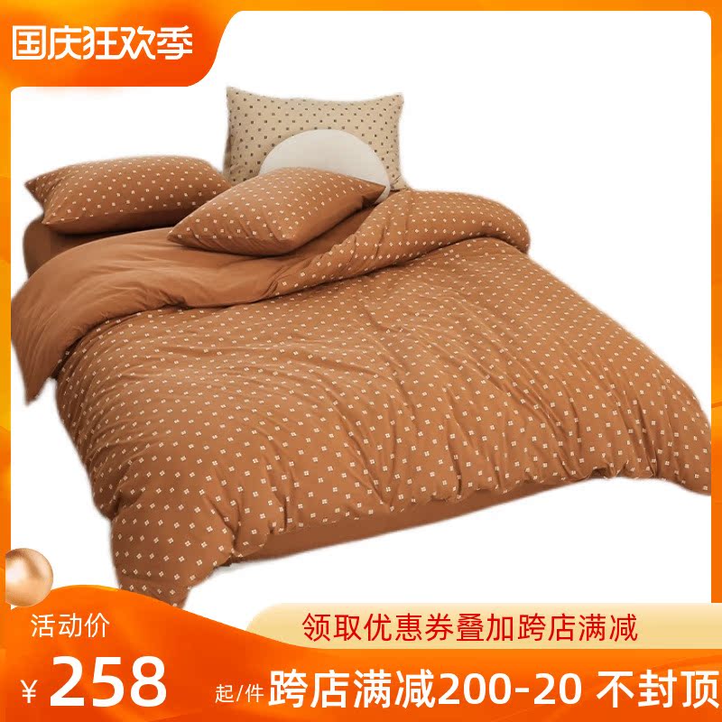 Class A Tianzhu cotton knitted cotton four-piece set of printing 3-piece set of simple cotton naked bed sheets, quilt cover, bedding