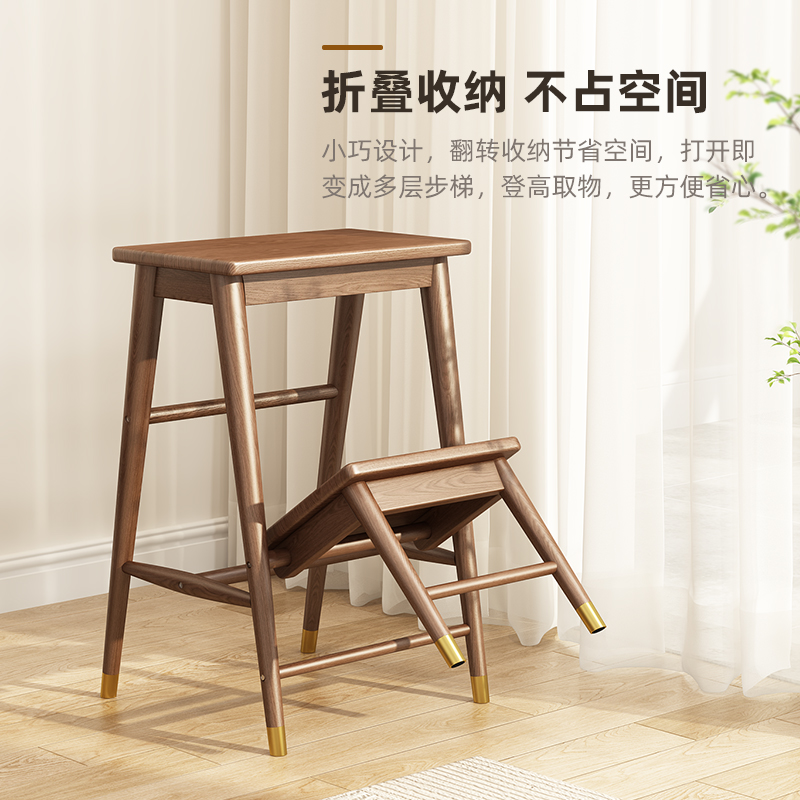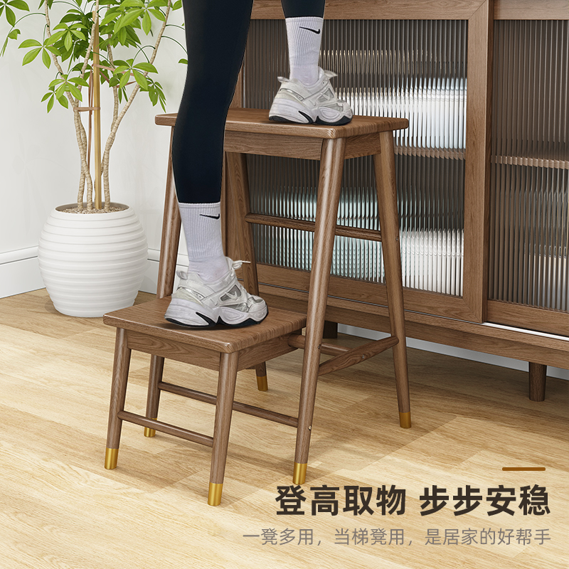 Solid Wood Foldable Ladder Bench Home Den High Stool Dual-use Ladder Stairs Chairs Wooden Bench High Foot Changing Shoes Stool-Taobao