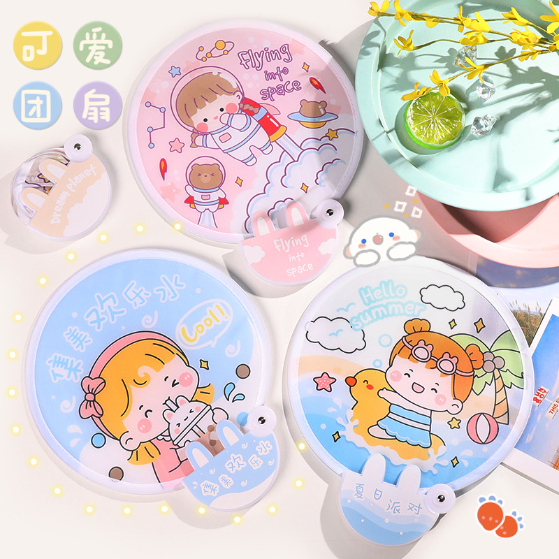 Cute Group Fan Summer Carry-on Mini Small Fan Child Bifacial Round Fan Day Style Cartoon Cloth Face Folding Fan