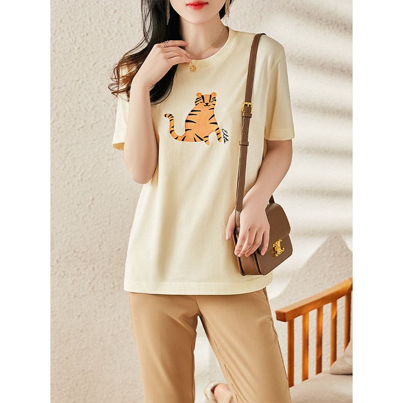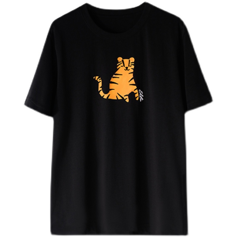 Tiger printed black short sleeve T-shirt woman 2022 Spring summer new fashion cut-age round collar hit bottom of the bottom