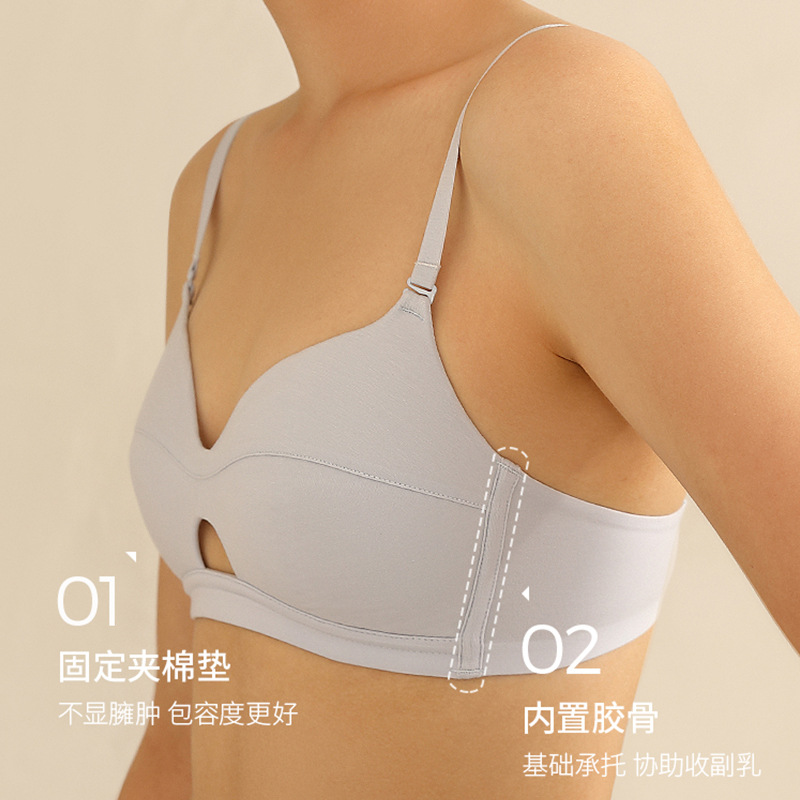 Cotton Underwear Ladies No Steel Rings Big Breasts Showing Small Bras Gathering Receiving Breast Bras Large Size Breathable Summer Thin Sections