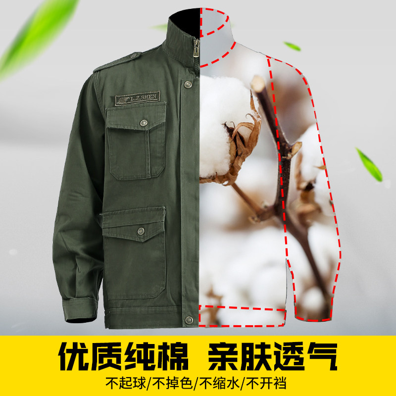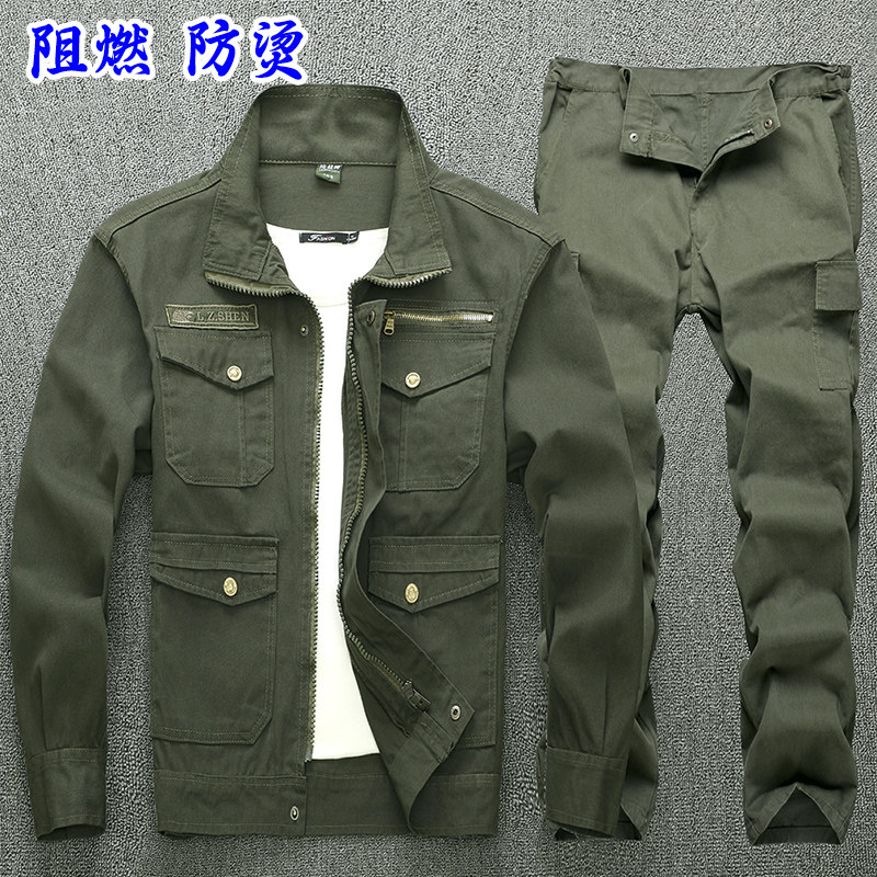 Labor protection clothing men's work clothes wear-resistant suit tooling thickening spring and autumn construction site flame retardant anti-scalding twill electric welder pure cotton