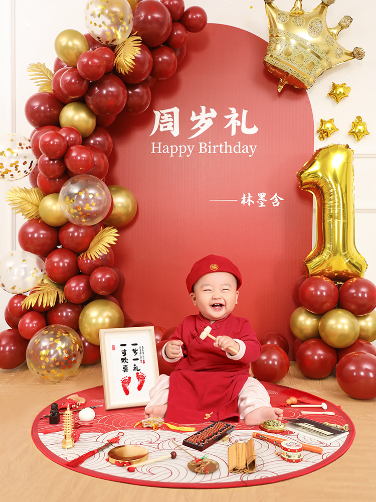 Niu Baobao's first birthday decoration scene one catch week ceremony 1 boy and girl lottery props background wall net red