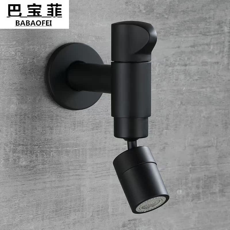 Full copper black mop pool tap quick opening splash-proof balcony mop pool lengthened small water faucet into the wall ultra-short universal