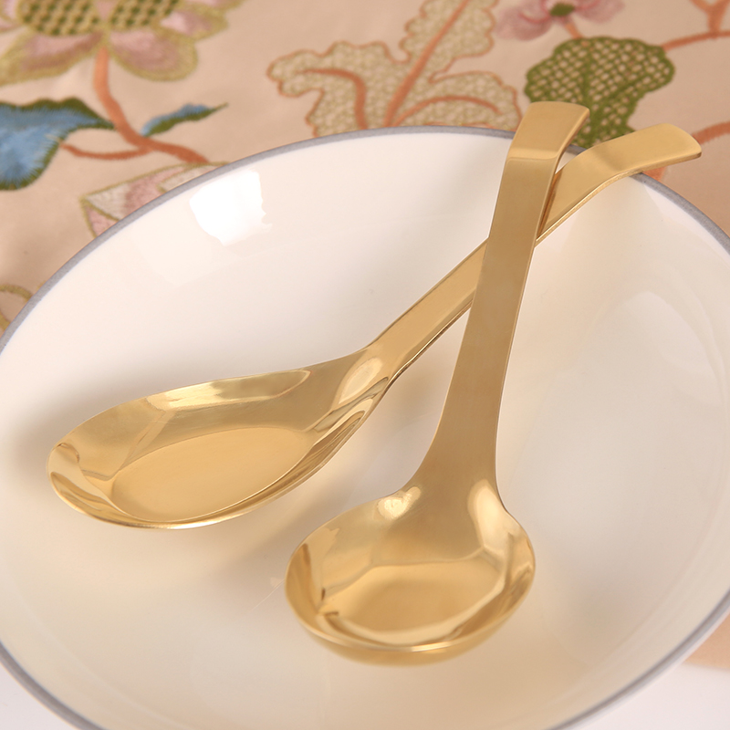 Brass drink soup spoon bronze spoon Home handmade big head deepened soup spoon thickened porridge spoon round spoon tablespoon cutlery cutlery