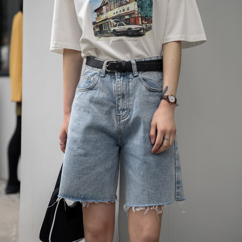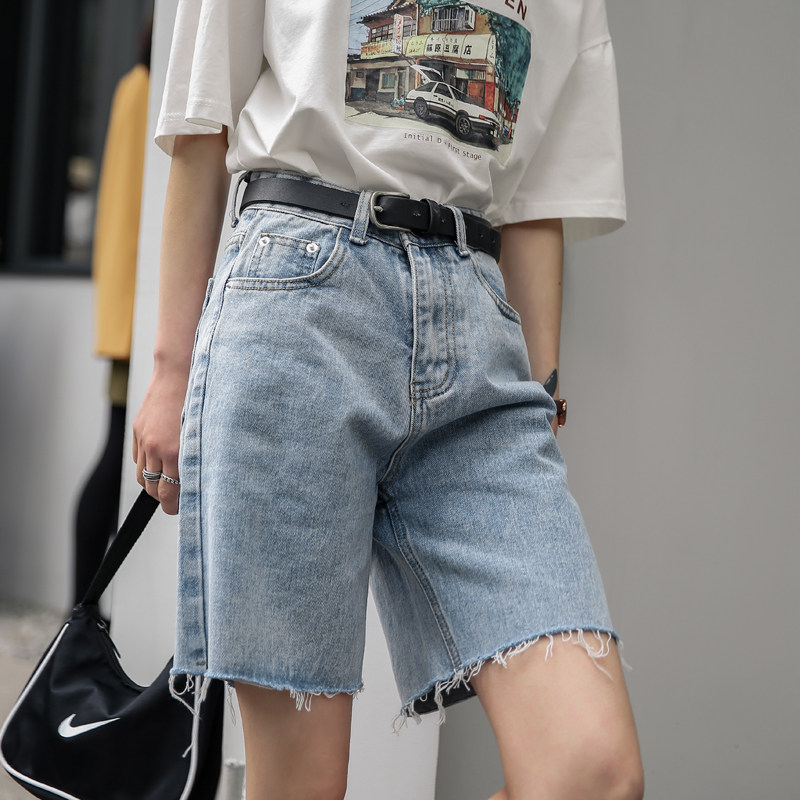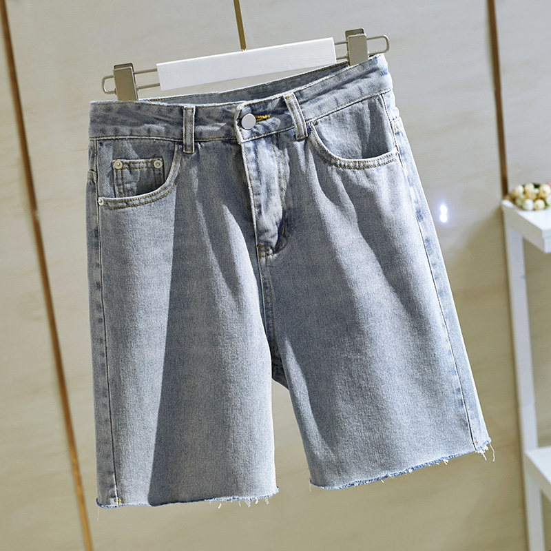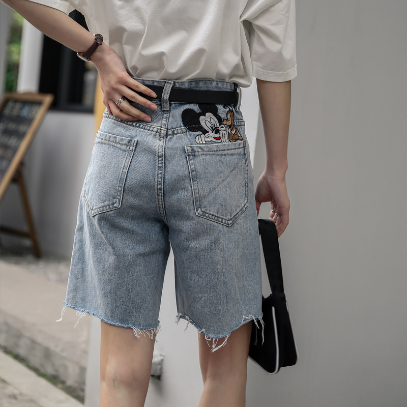 Denim shorts women's 2022 summer new straight pants riding pants Mickey embroidery high waist loose five-point pants