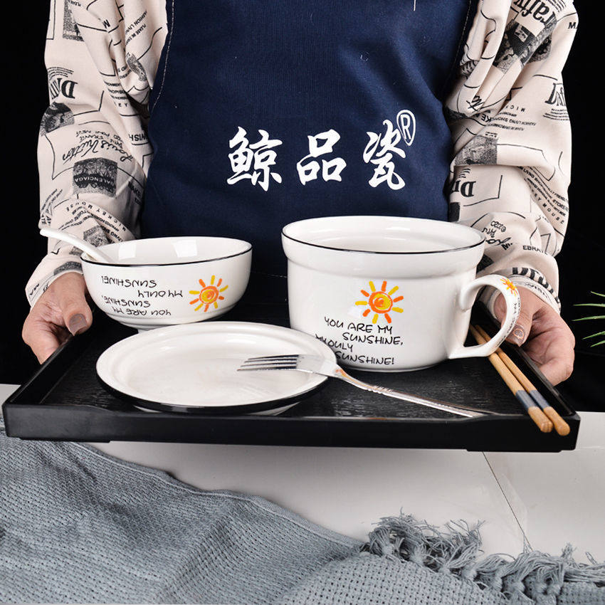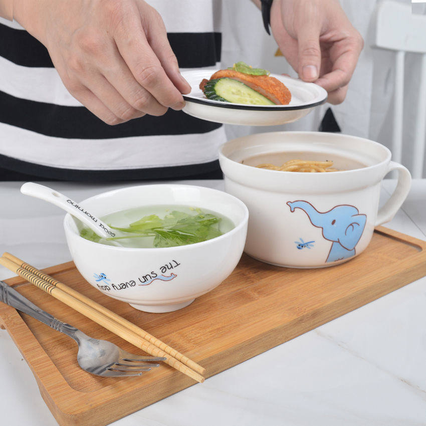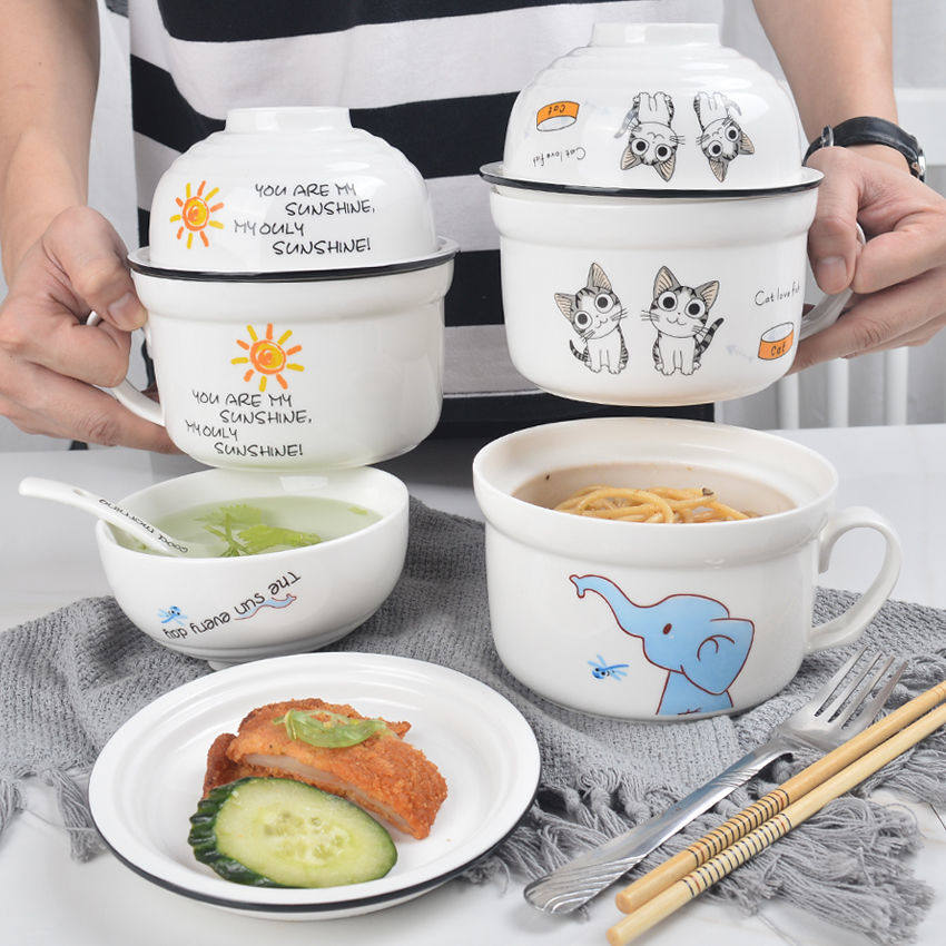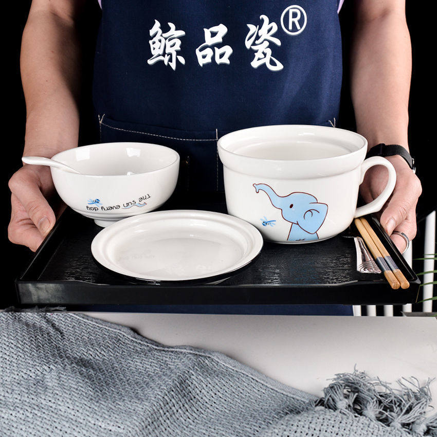 With bowl of the bowl, the bowl is a double lunch box ceramic fast food cup with cover student microwave oven special dinner cylinder