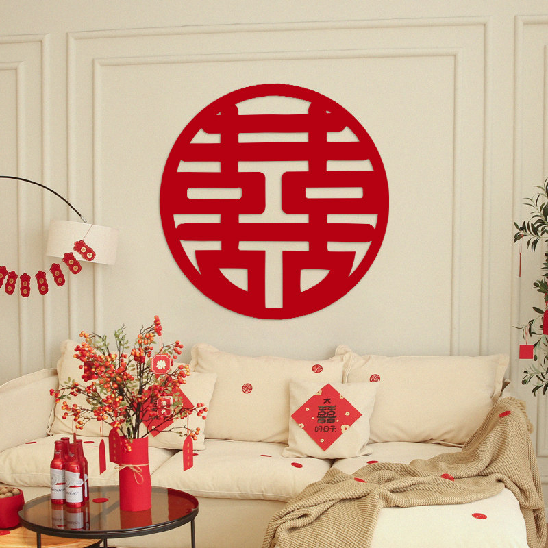 Wedding Happy Character Sticker Gate Wedding Wedding Wedding House Arrangement Big character Calligraphy Decoration Bedroom House Door Joy hanging accessories Wedding Celebration Door Sticker