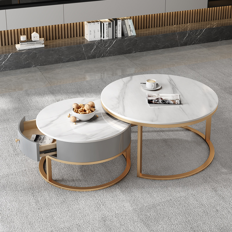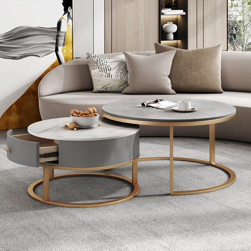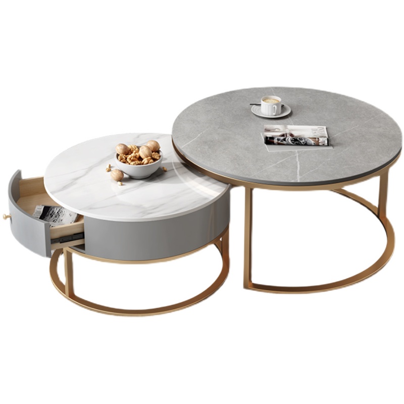 Nordic light luxury creative coffee table living room household round multifunctional tea table rock slab small apartment net red simple and modern