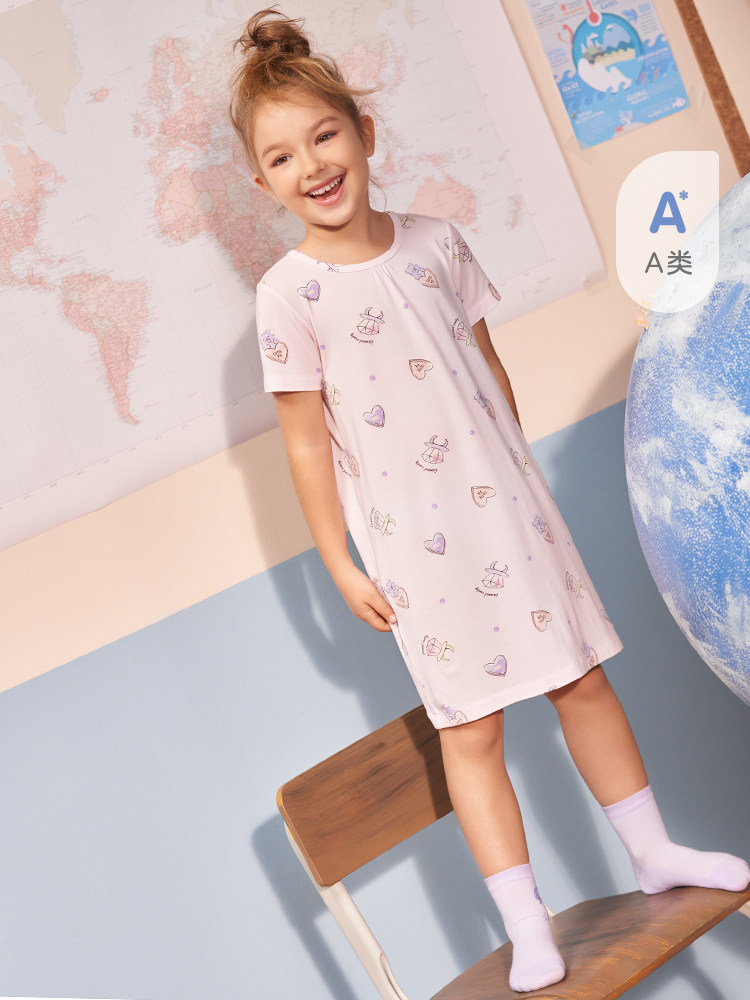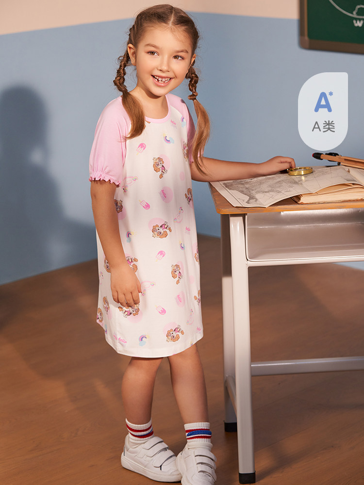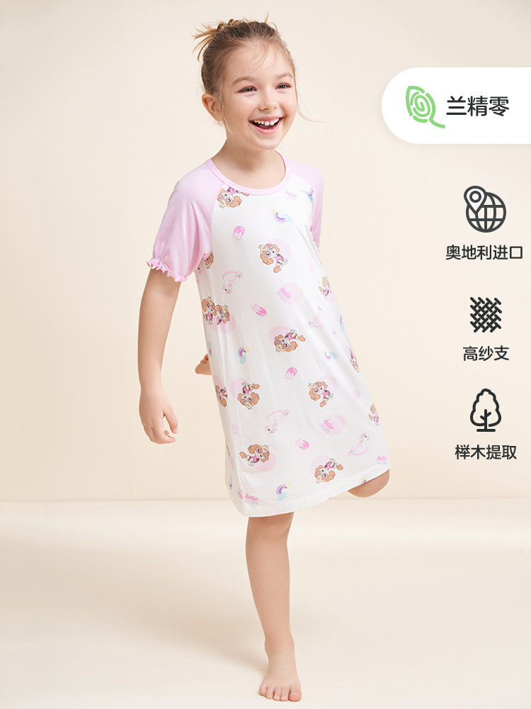 Lenzing zero) love children and girls short-sleeved nightdress pajamas pajamas Wang Wang team joint IP modal home service