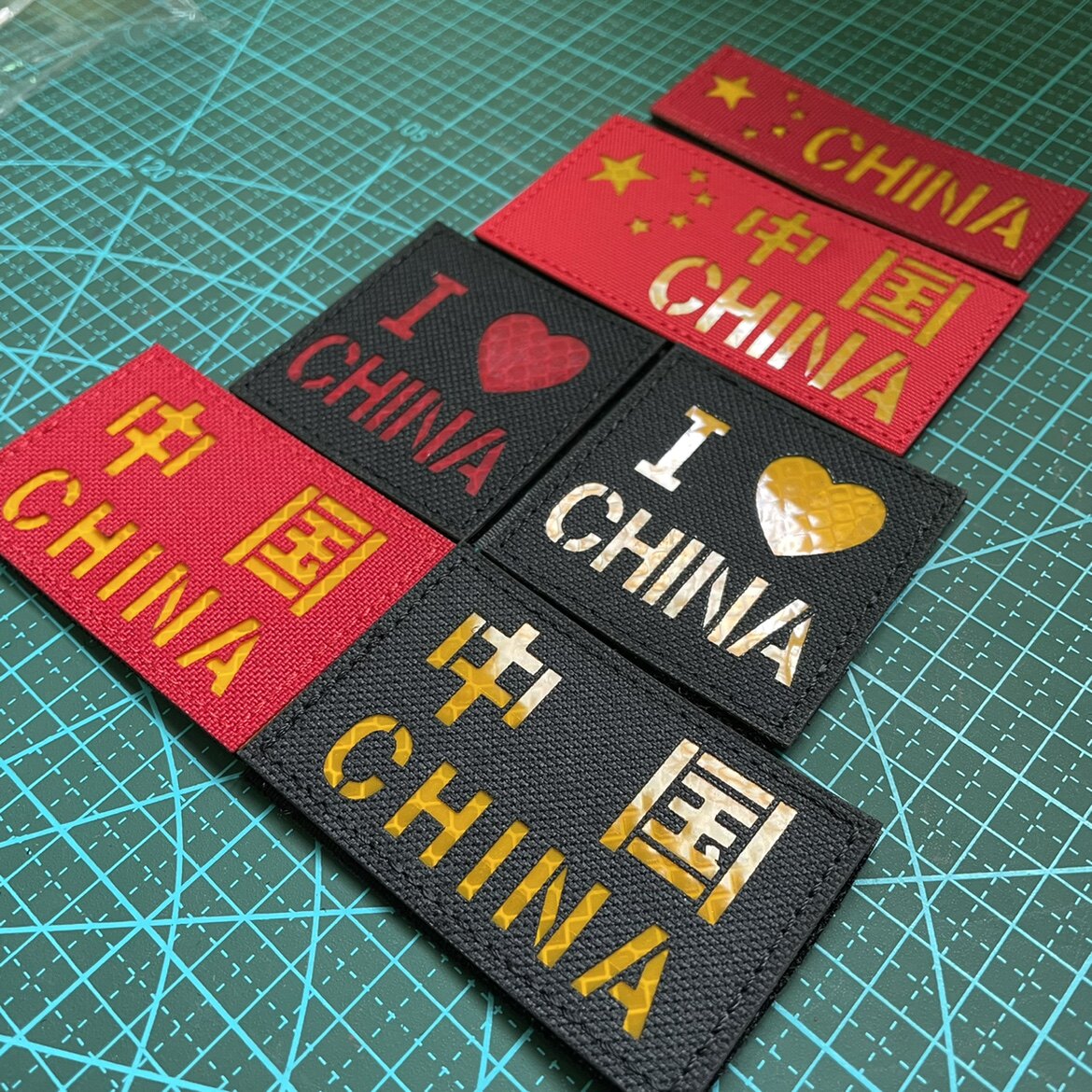 Reflective CHINA Chinese morale badge Velcro badge five-star red flag badge I love China laser engraved armband