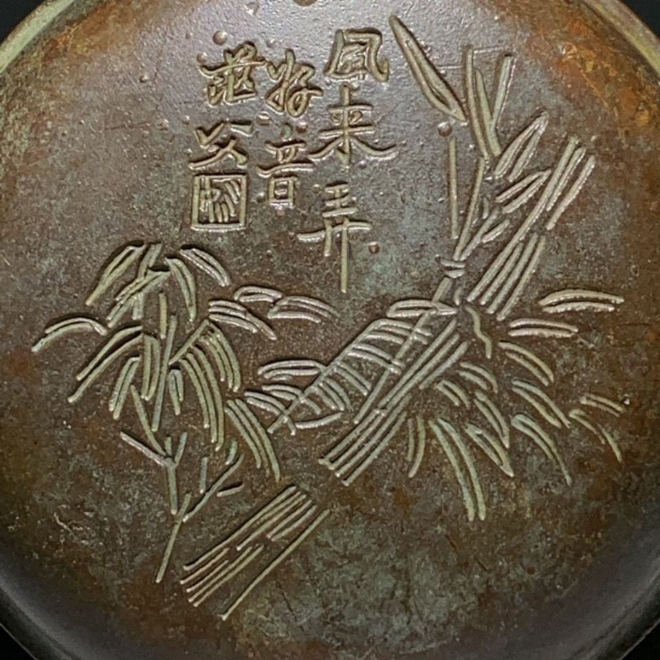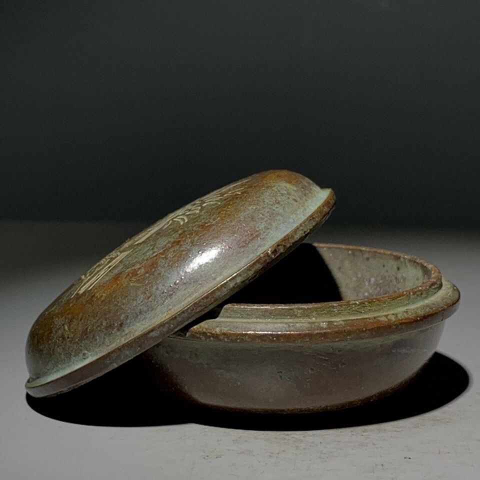 Antique carved figure round bamboo ink box printing mud box old objects old goods old bronze antiques genuine collections