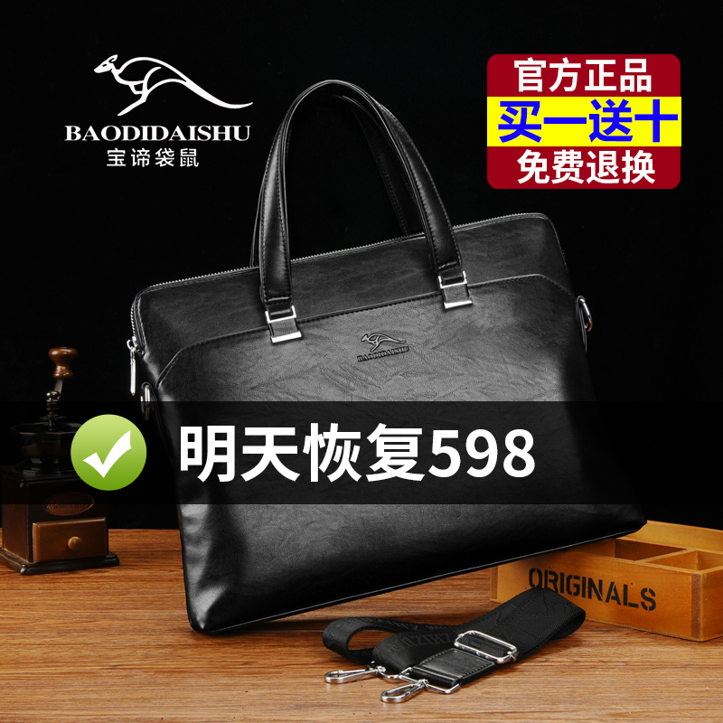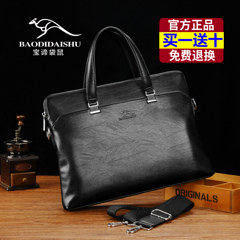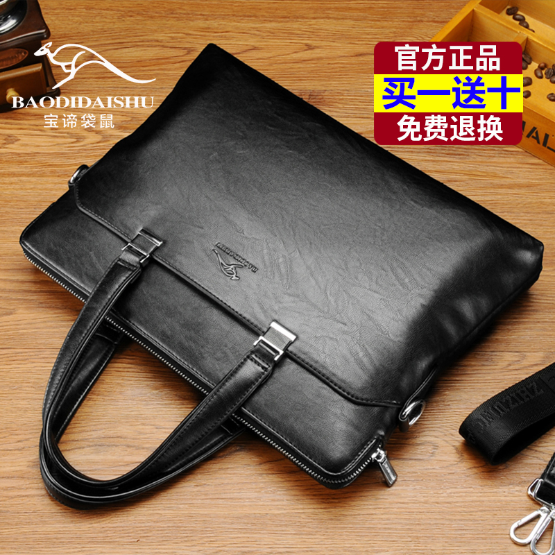 Treasure Chic Kangaroo Men's Handbag Handbag Leather Business Casual Computer Skew Satchel Shoulder Bag Office Cow Leather Briefcase Man