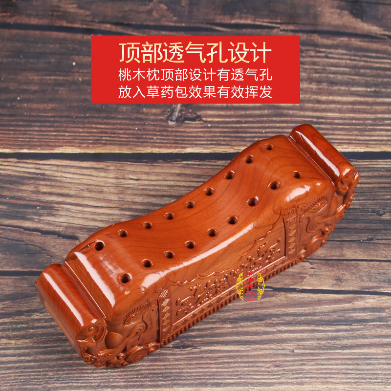 Authentic Feicheng peach wood pillow dragon and phoenix Chengxiang Ruyi health care hard pillow massage log solid wood carving cervical vertebra ornament