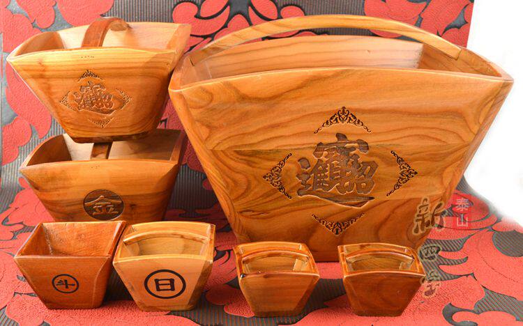 Authentic peach wood rice hopper Imitation Ancient Feng Shui Pendulum home Decorative Shop Poly Po Pot of the Golden Opening Gift of the Golden Opening Gift