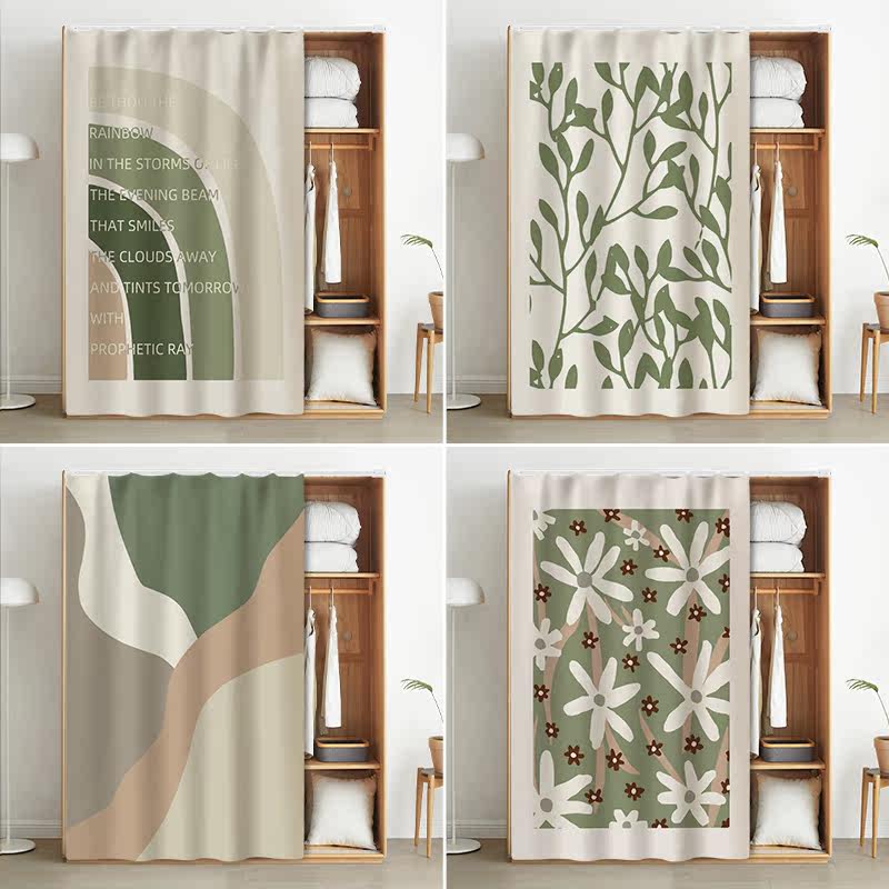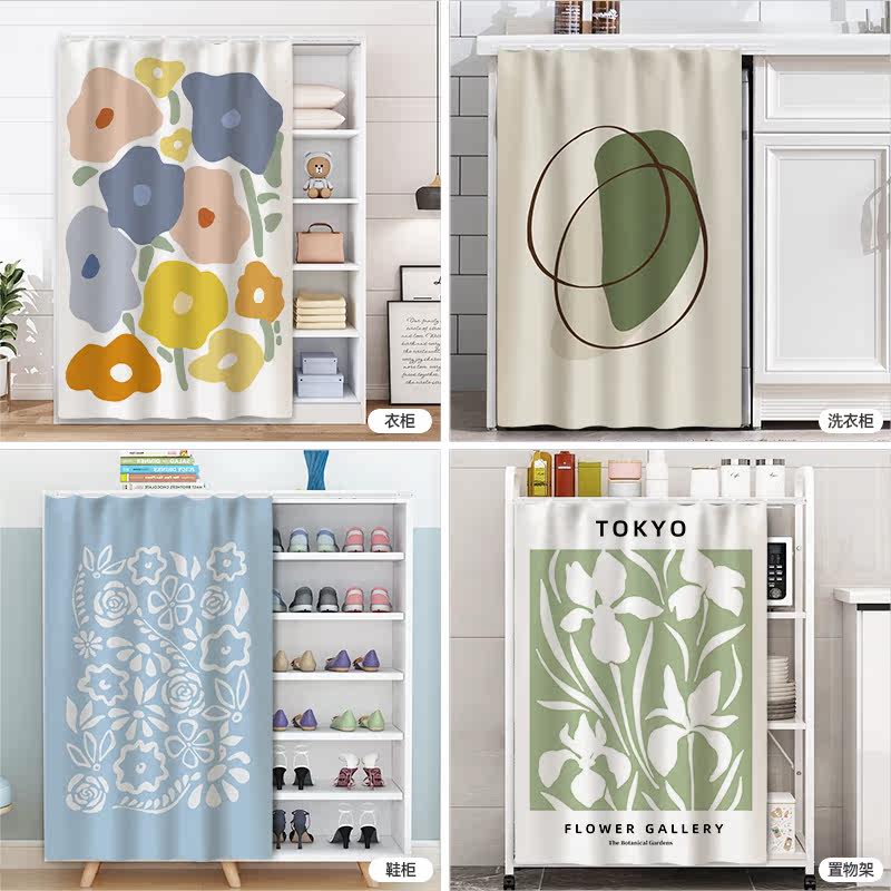 Open wardrobe shielded curtain door curtain perforated track style cabinet anti-dust pull cord curtain bookcase Decorative Curtain