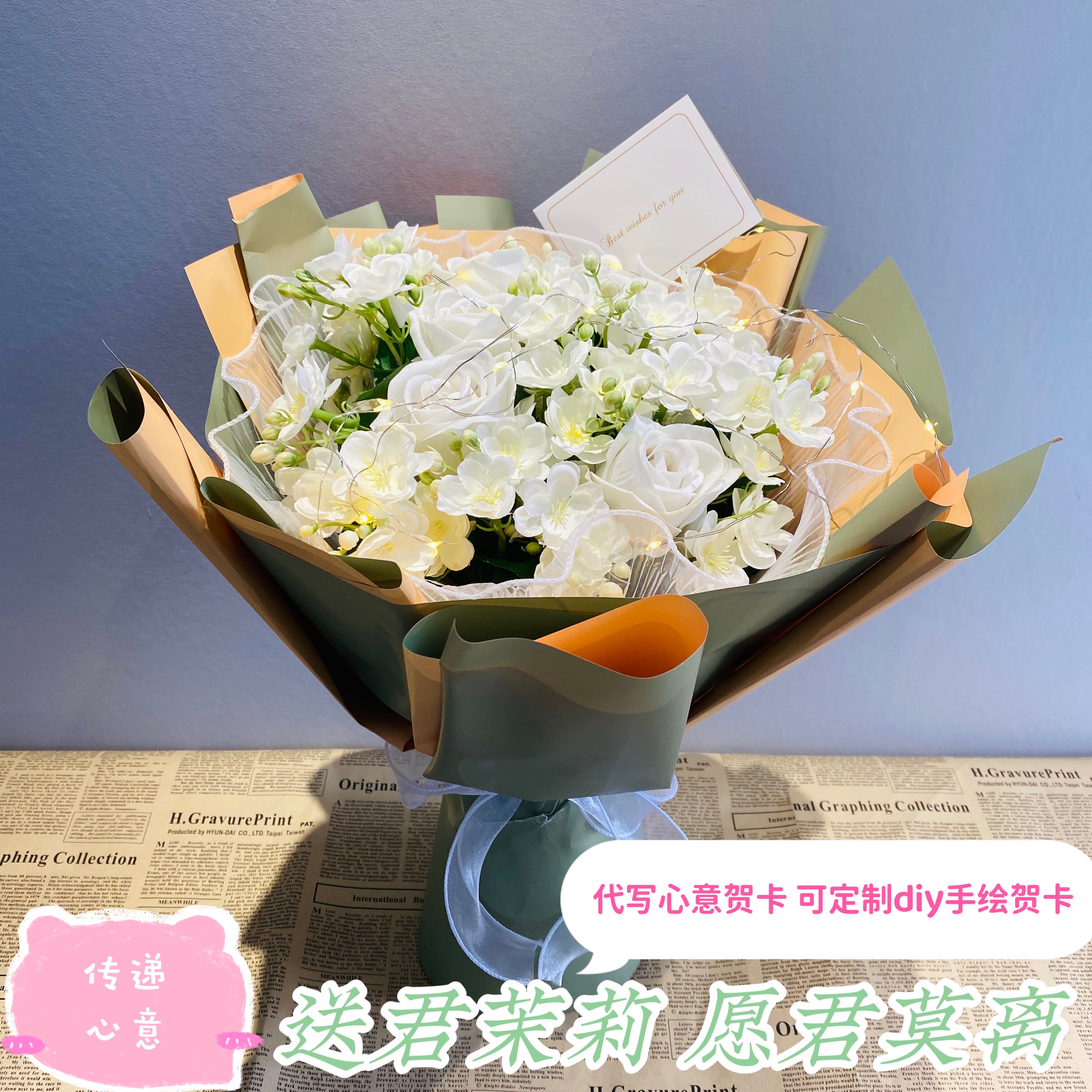 Jasmine bouquet artificial flower rose photo photo holding flower gift bouquet fake flower certificate bouquet for boyfriend - Taobao