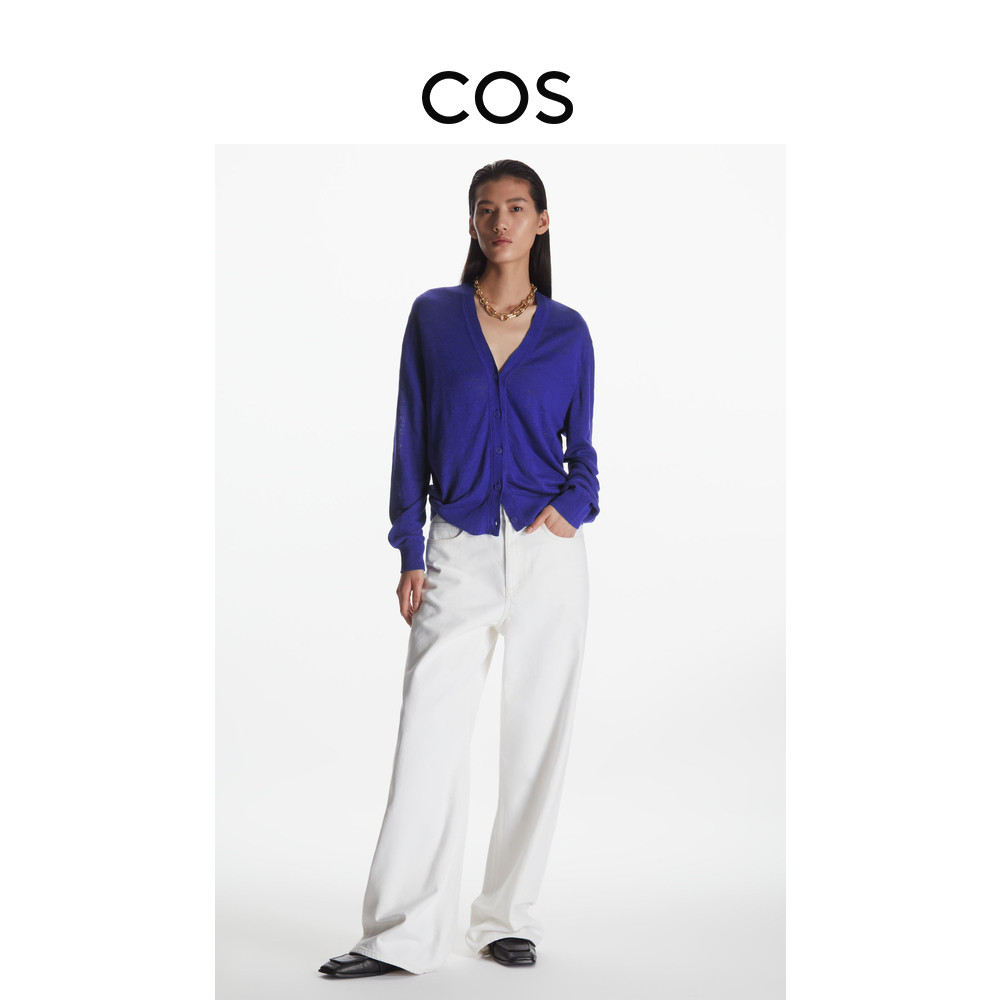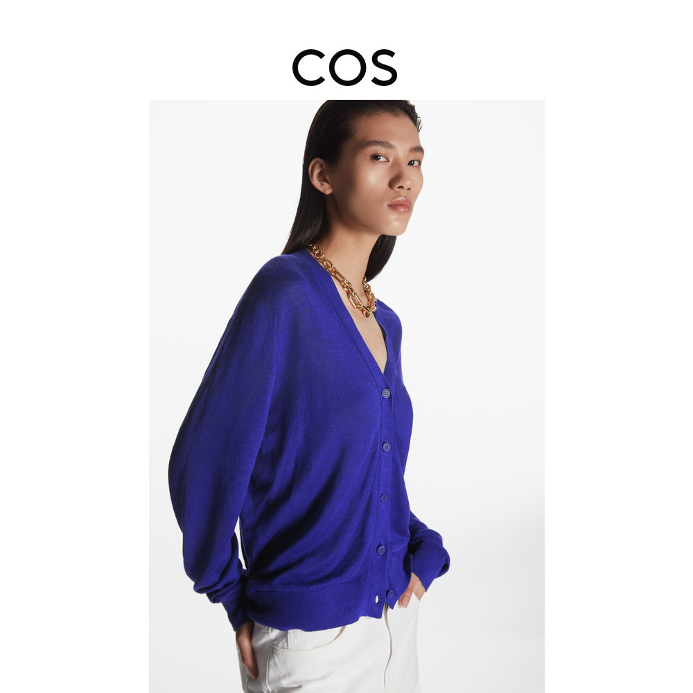 COS women's dress Standard version V neckline linen hooded sweatshirt jacket blue purple 2022 spring new product 1074243002