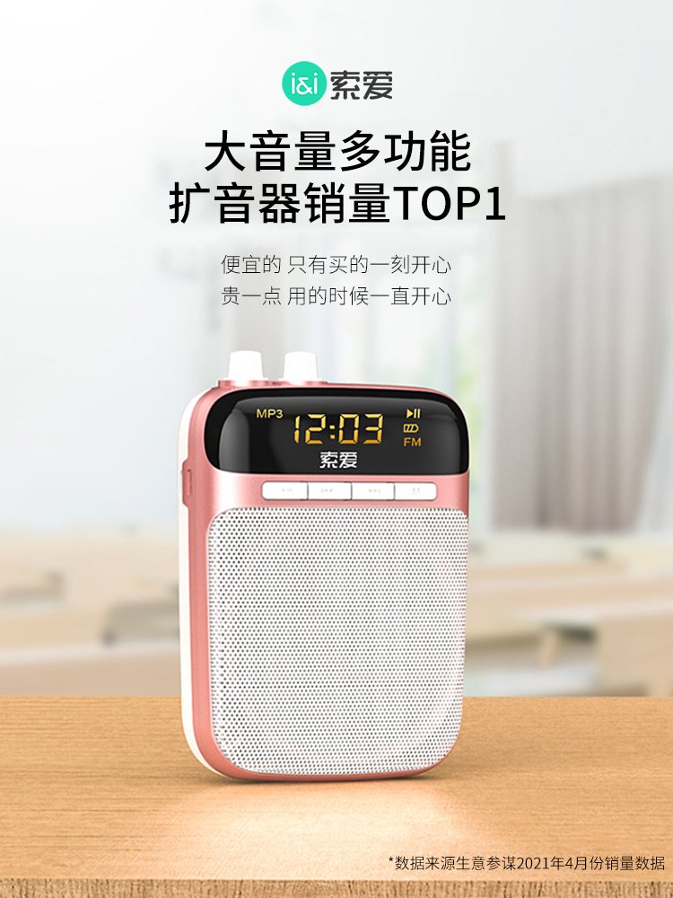 Solove S318 small bee megaphone teacher with microphone wireless teaching special class small multifunction ear wheat Outdoor called to sell loudspeaker portable hymns Shouting Talk Plug-out machine