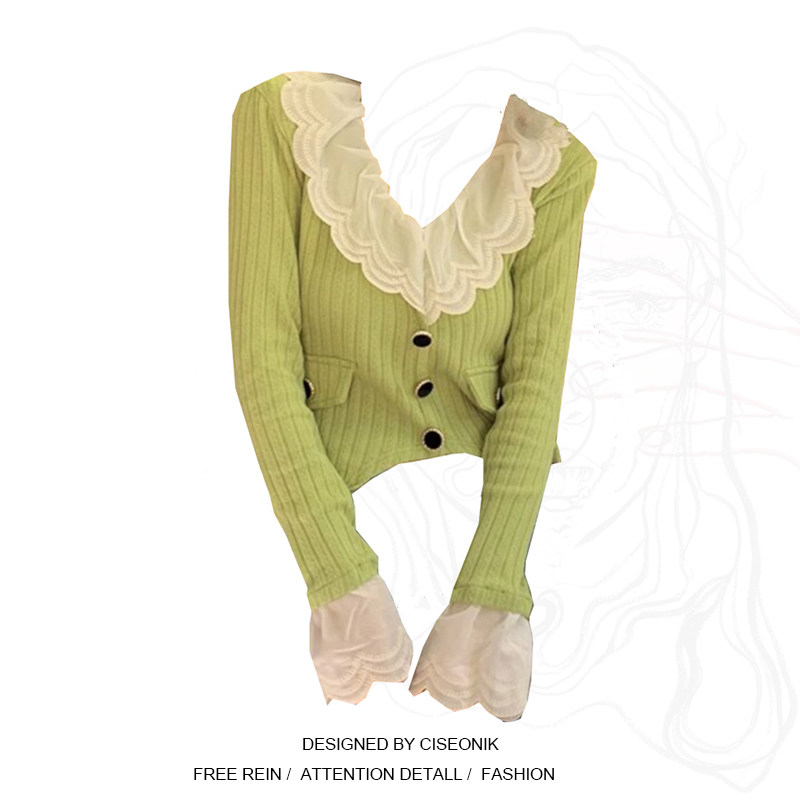 Large-yard fat sister French sweet doll collar-clad long sleeve knitted sweater sweet sportswear sweet coat