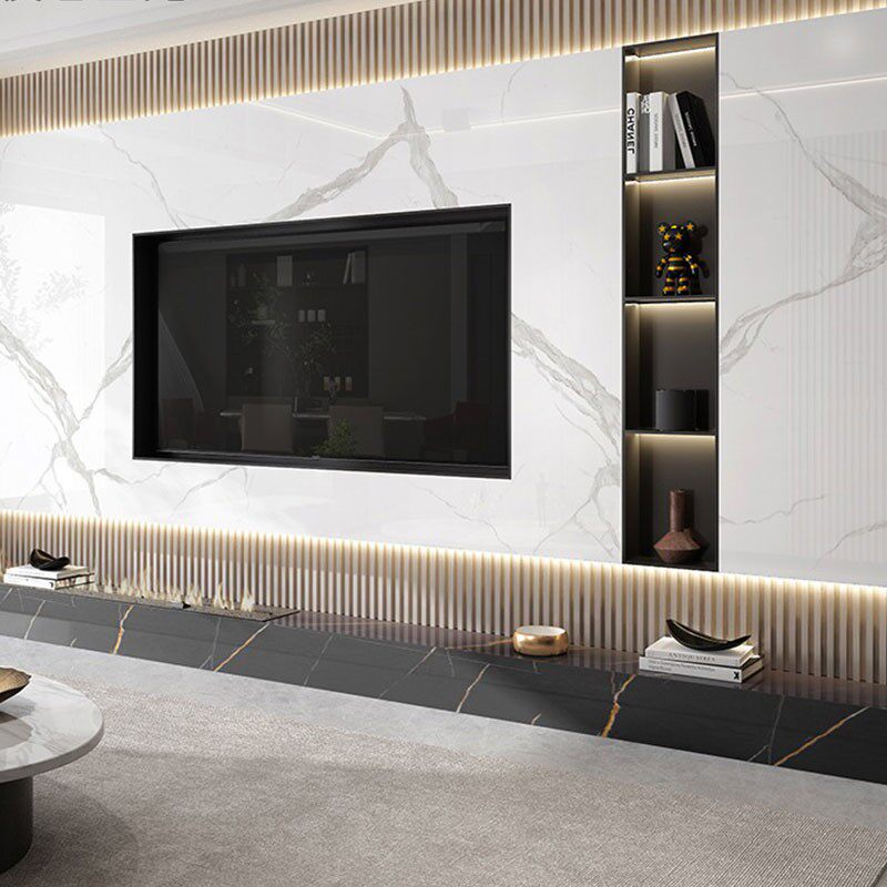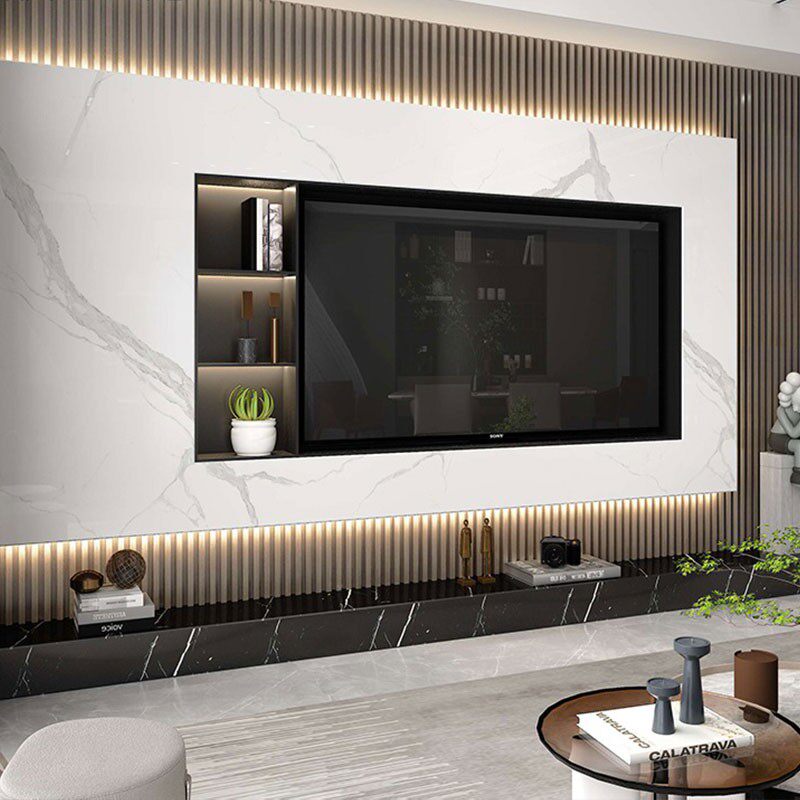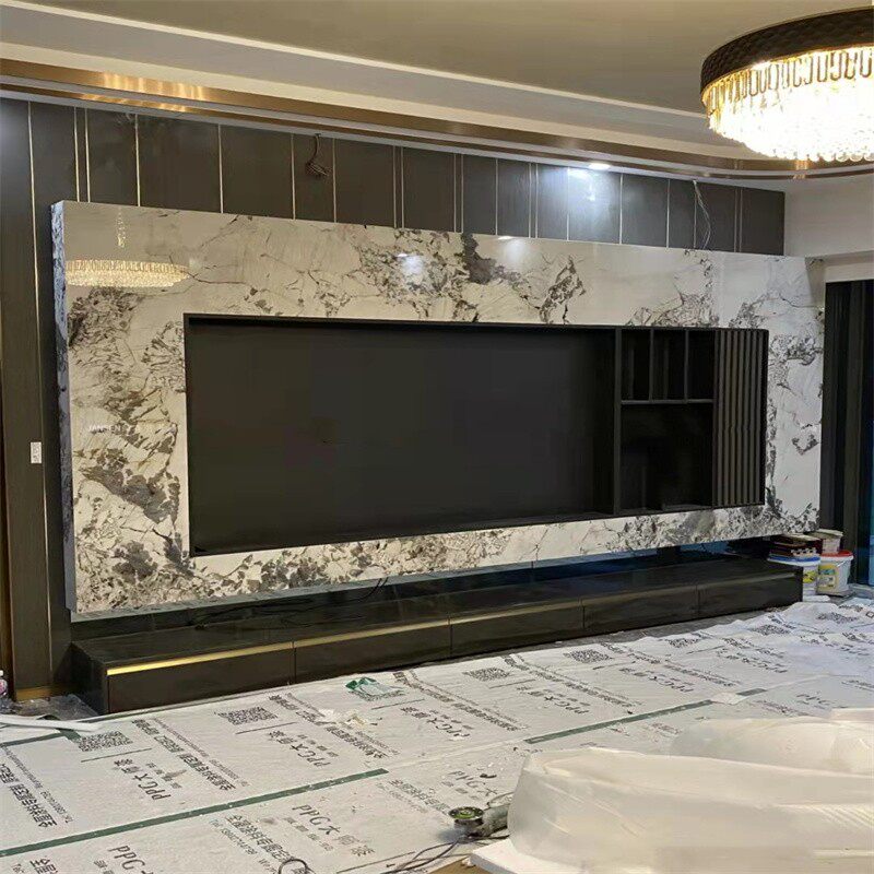 Three dazzling mesh red minimalist stainless steel TV wall niche light extravagant embedded metal wall cabinet TV customized background wall