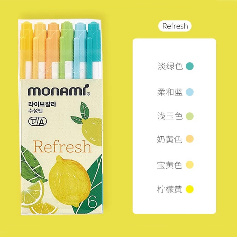 6 Color South Korea Murna Beauty Double Head fluorescent pen cap Pale Color Soft Mark Cute Hand Ledger Key Marker Pen