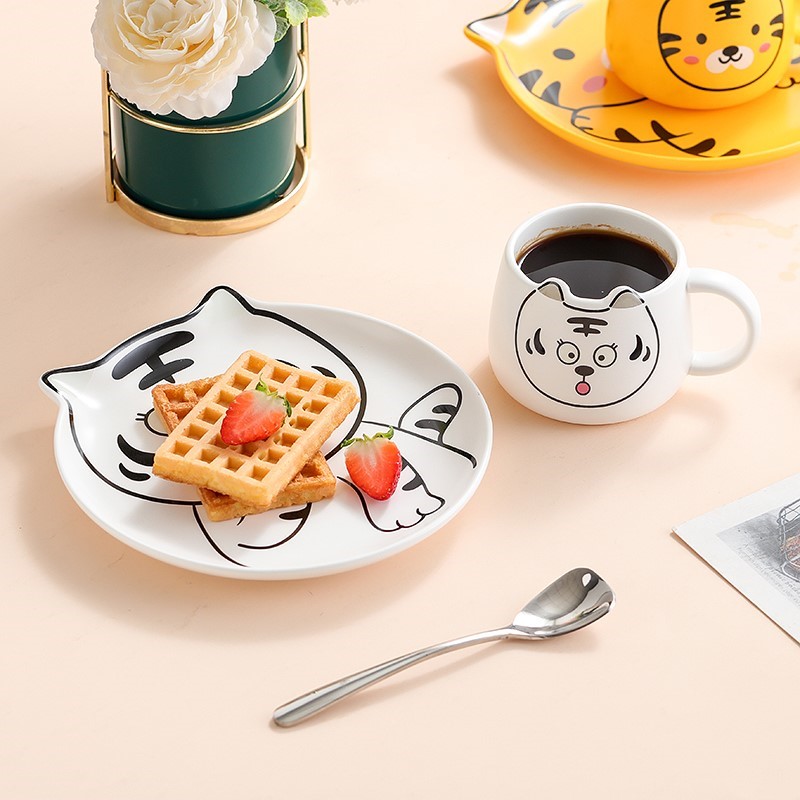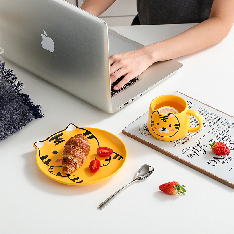 Tiger Year Cute Cup Children Breakfast Ceramic Tableware Set Cartoon Boy Little Tiger Pattern Cup