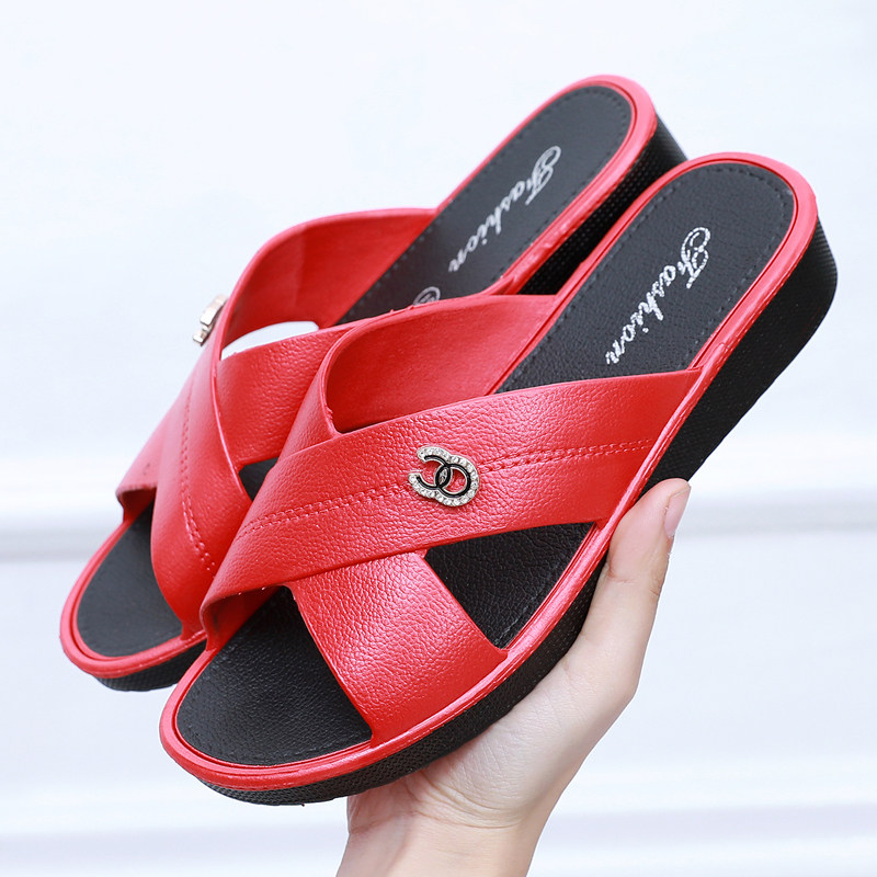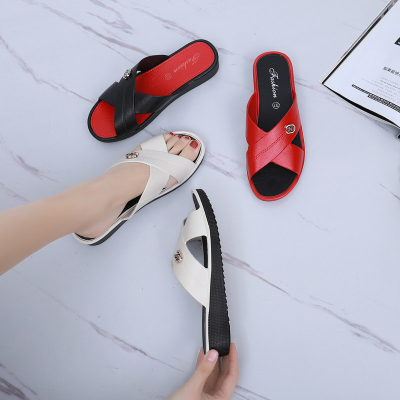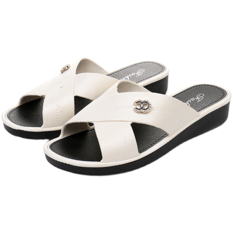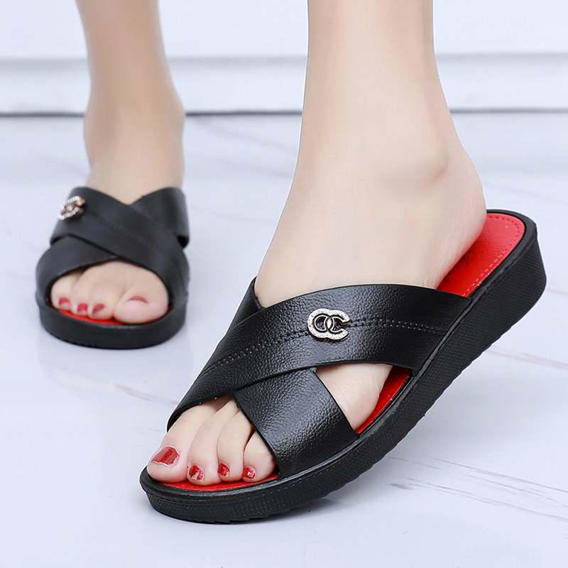 Sandals and slippers women's middle heels and summer outer wear fashion all-match flat bottom casual non-slip home thick bottom low heel social slippers women