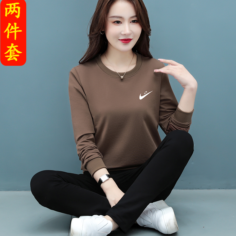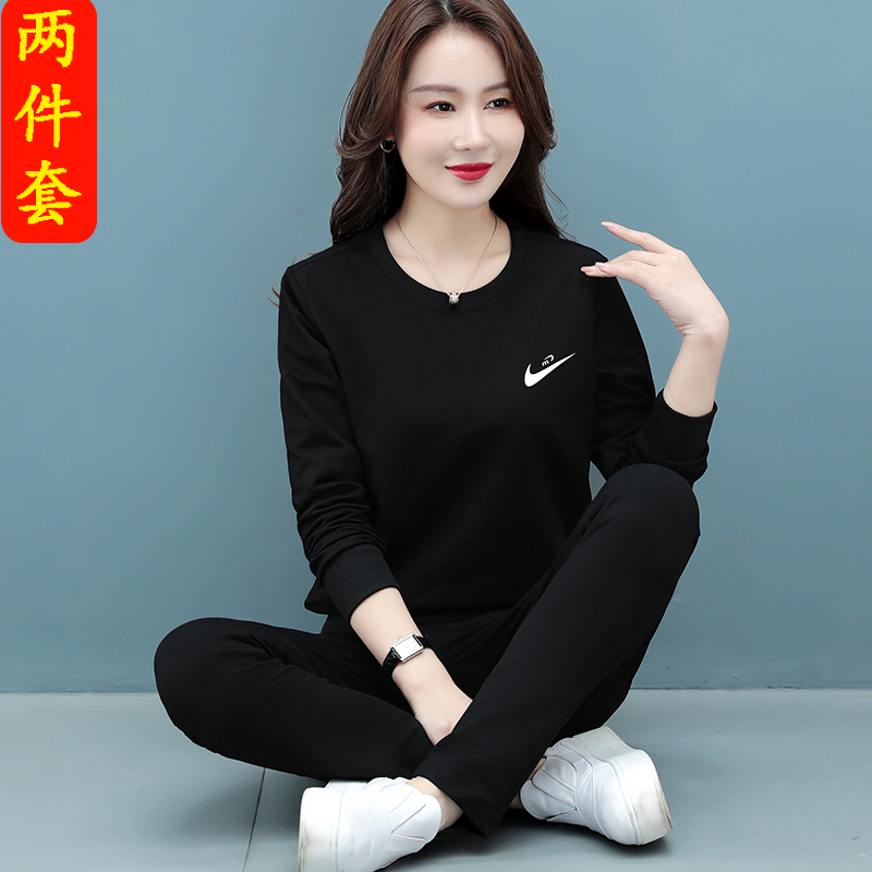 Nameplate Sports Suit Women Spring Autumn 2022 New Fashion Round Neckline Thick Cotton T Foreign Air Group Purchase Casual Clothes Two Sets