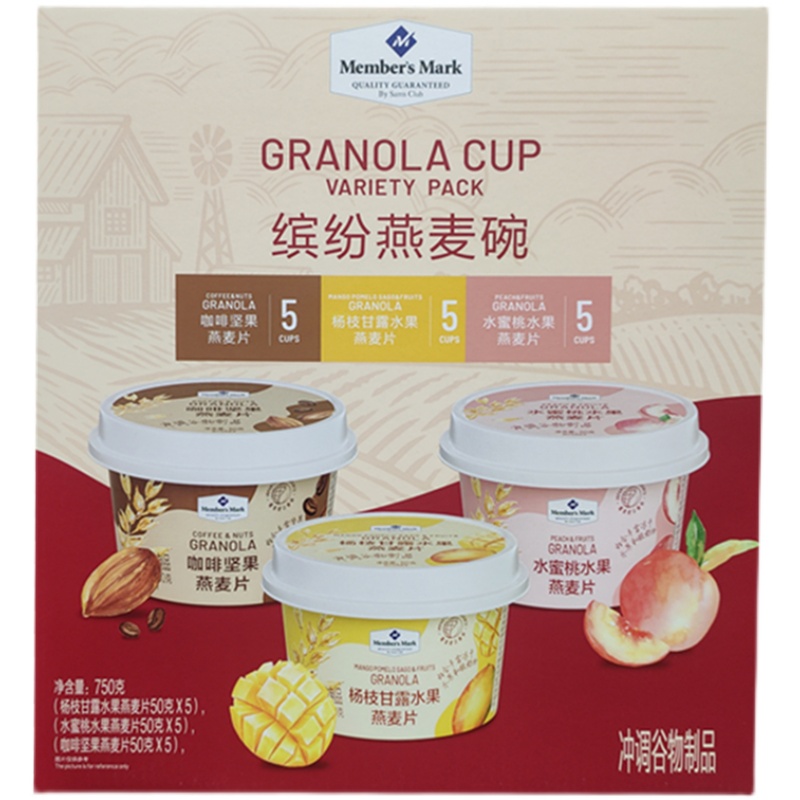 Sam Fun Oats Bowl Nuts Fruit Cereal Poplar Manna Water Honey Peach 50g * 15 Bowls Nutritious Breakfast